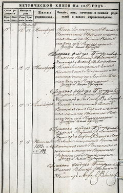 1862 р., березня 9. ̶ Запис про народження та хрещення Миколи Корниловича Пимоненка у метричній книзі церкви Миколи Притиска на Подолі в м. Києві.