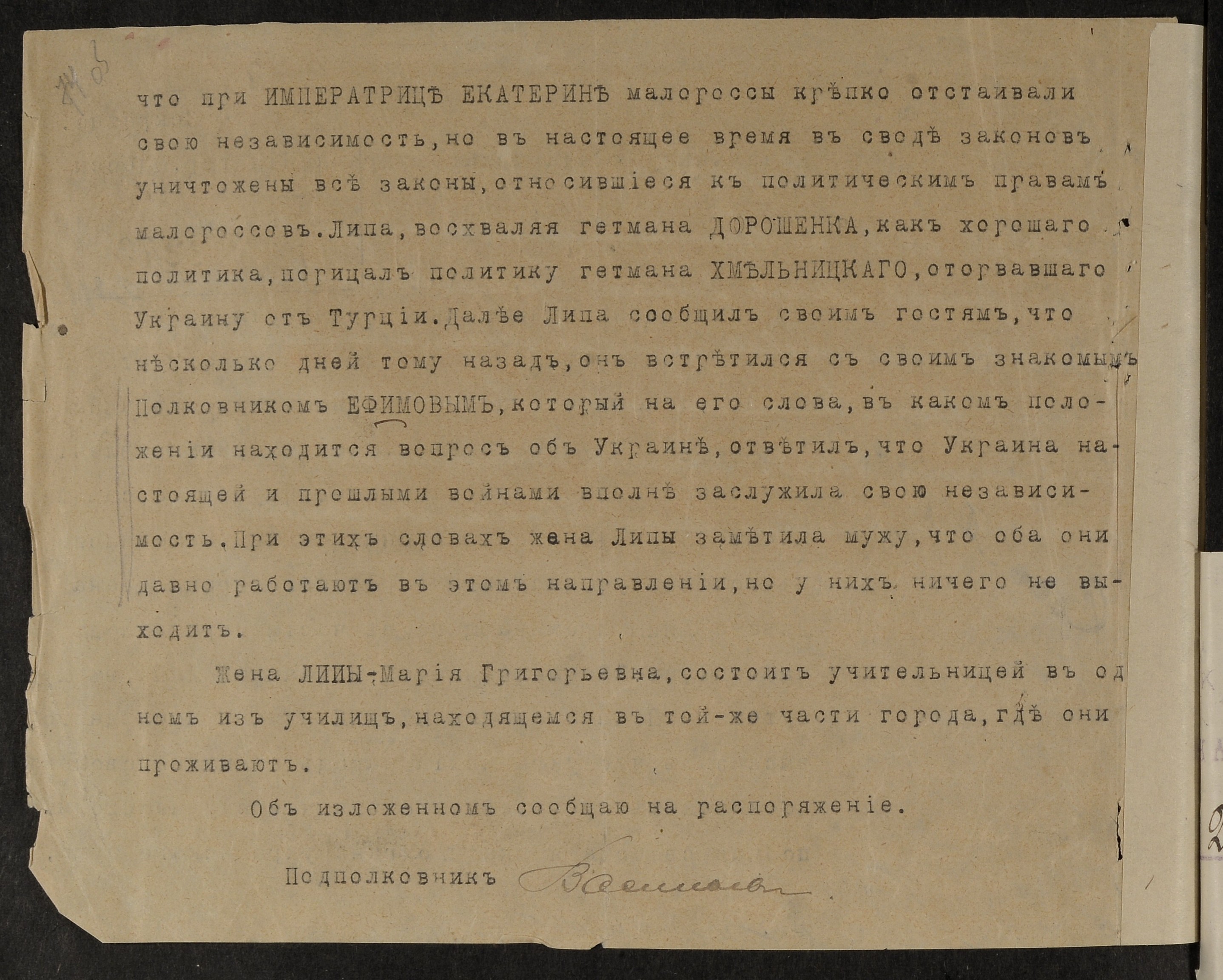 з відомостями про санітарного лікаря Івана Львовича Липу