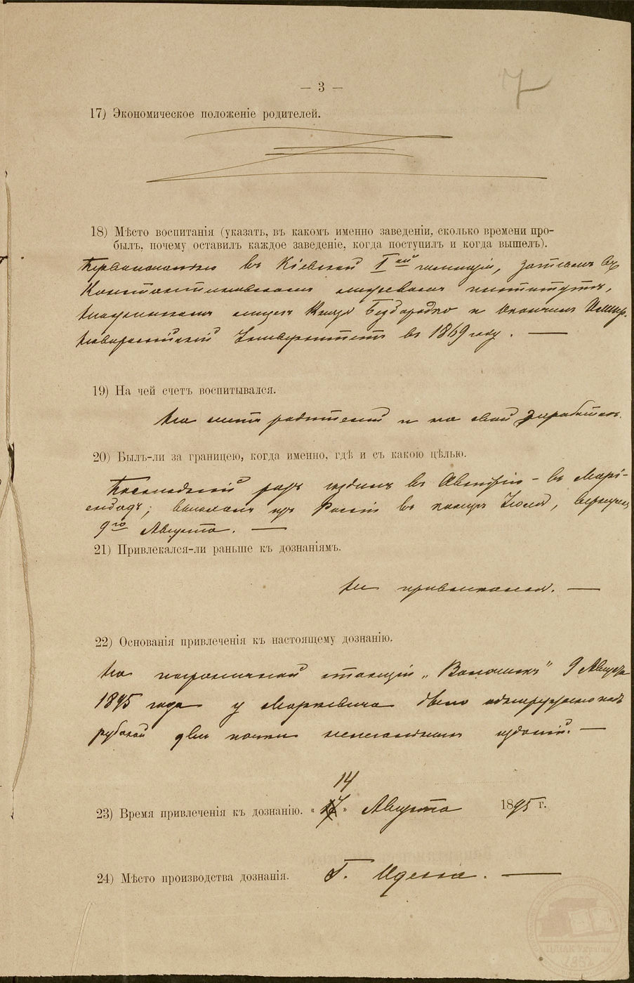 1895 р., вересня 2. – Відомості про О. І. Маркевича, зібрані Одеським жандармським управлінням