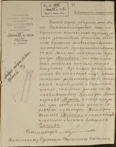 1903 р., червня 28. – Повідомлення ротмістра Одеського жандармського поліцейського управління залізниць М. П. Мадатова начальнику Одеського охоронного відділення