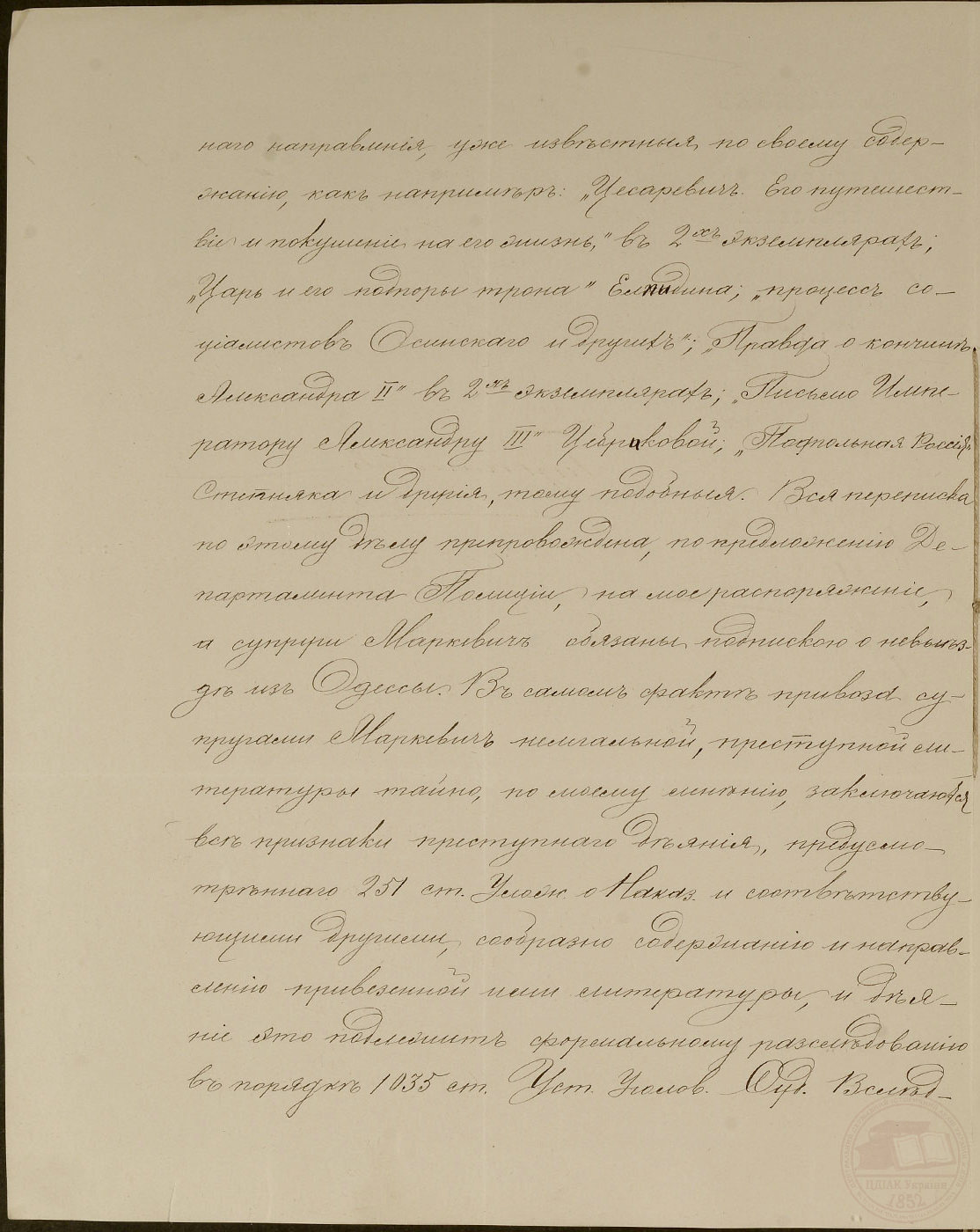 1896 р., березня 20. – Подання професора О. І. Маркевича прокурору Одеської судової палати Кукуранову