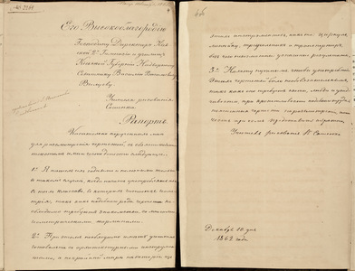 1861 р., квітня 27 – Клопотання управляючого дирекцією Другої Київської гімназії М. К. Чалого попечителю Київського навчального округу О. П. Ніколаі