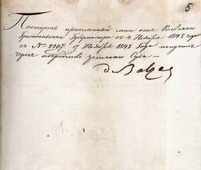 1848 р., листопада 17. – Розписка Оноре де Бальзака в отриманні тимчасового паспорта строком на один рік, виданого йому київським цивільним губернатором.