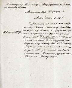 1847 р., жовтня 18. – Повідомлення міністру внутрішніх справ про приїзд Оноре де Бальзака з метою одружитися на поміщиці Ганській.