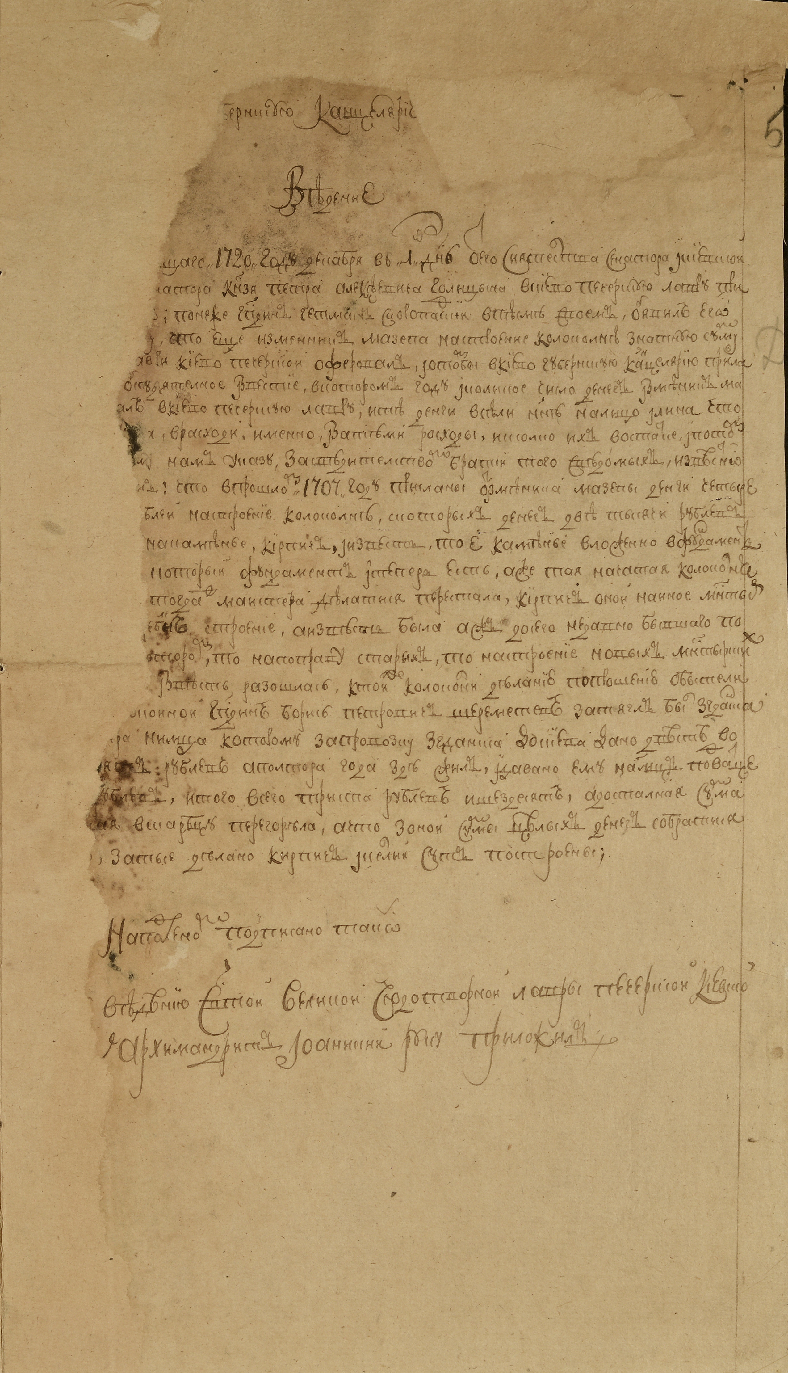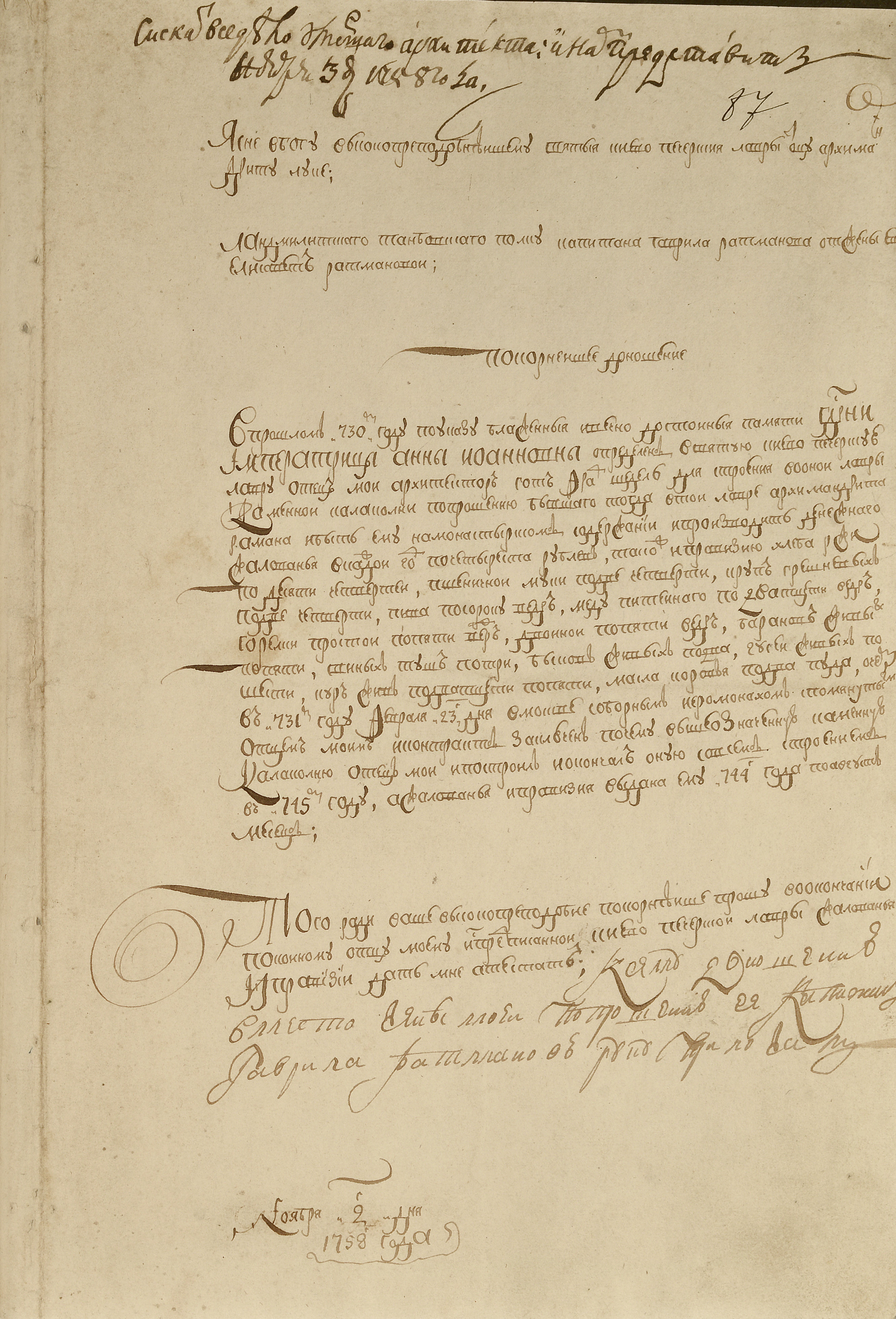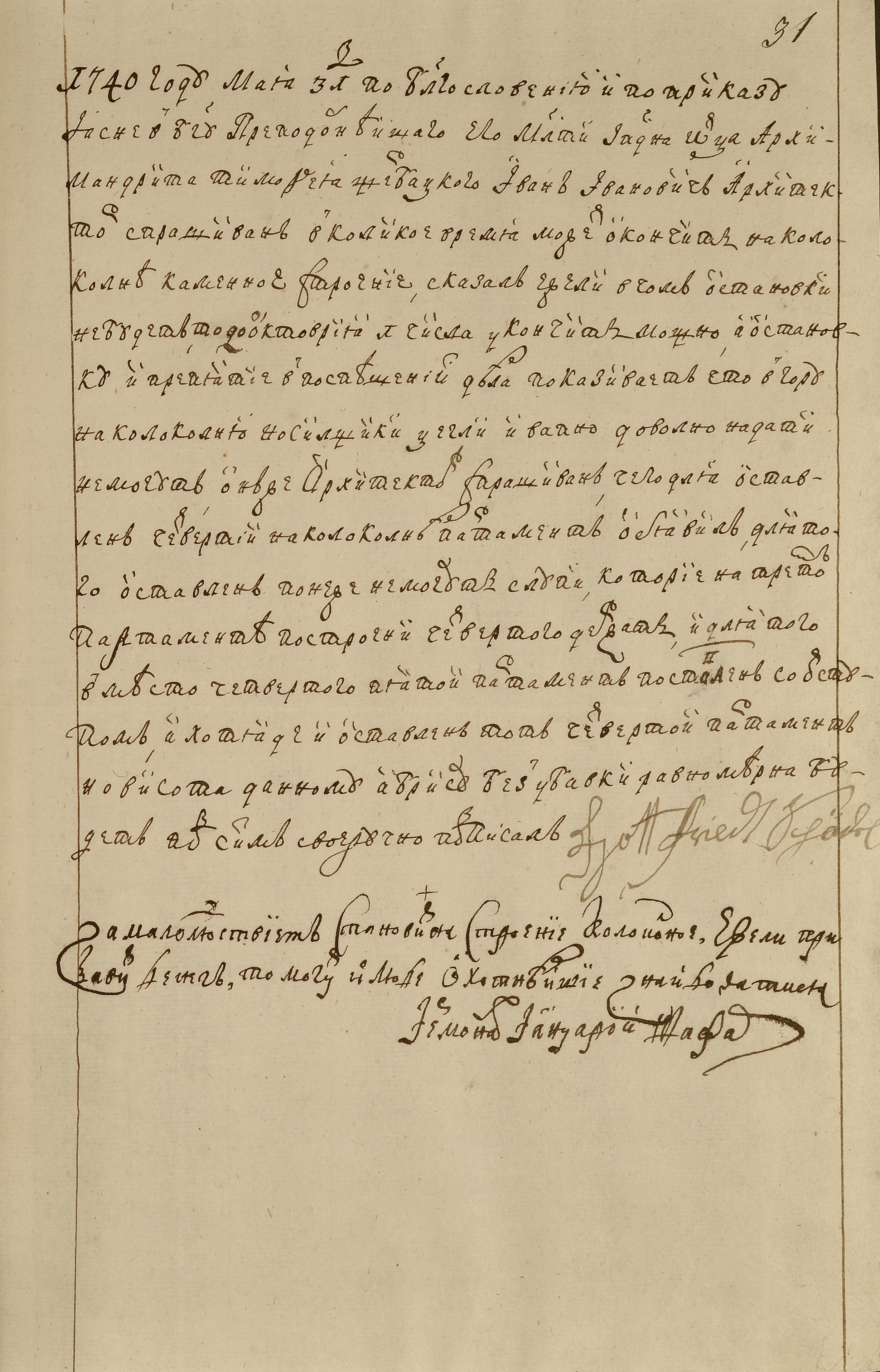 1741 р., липня 21. – Фрагмент подання Йогана Ґоттфріда Шеделя на ім’я архімандрита Тимофія