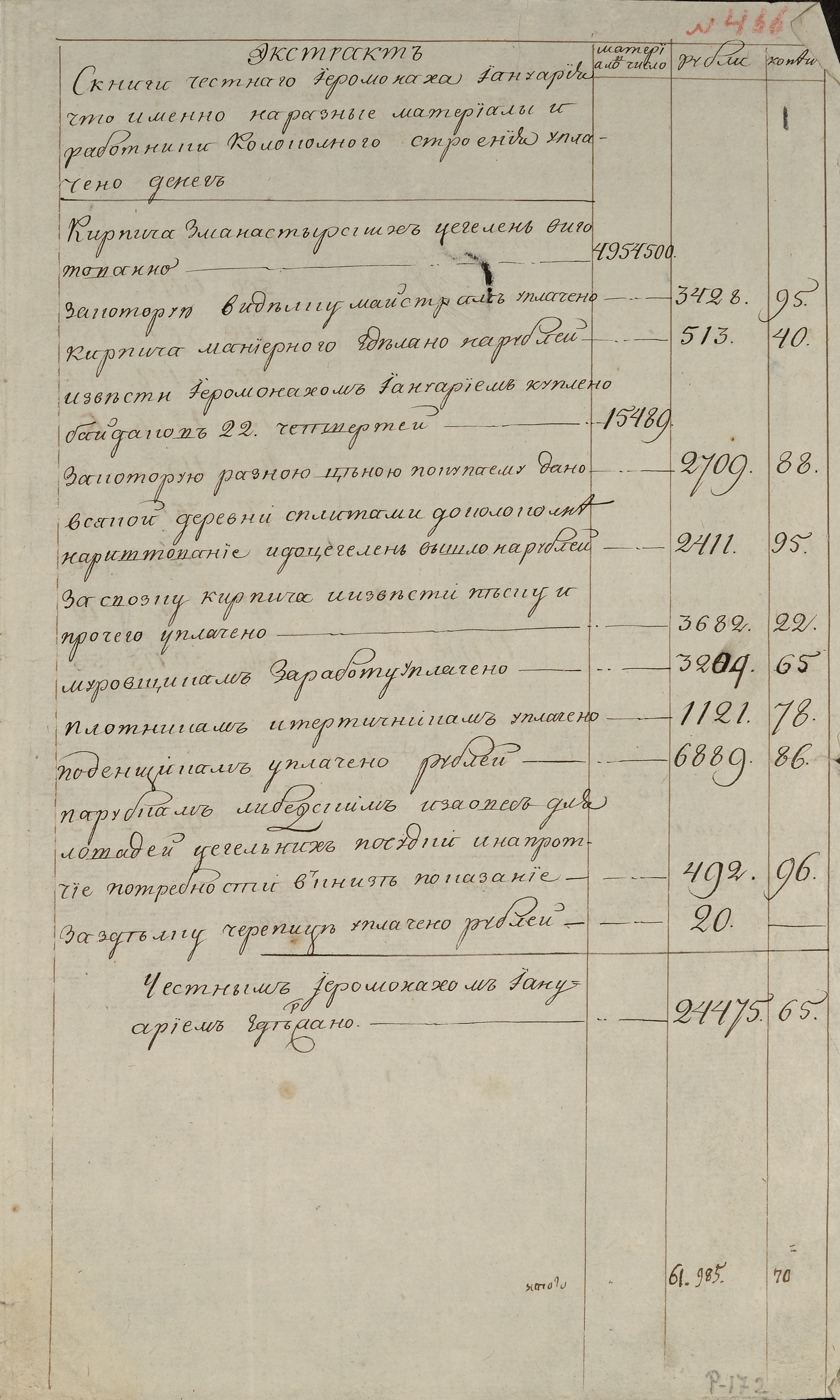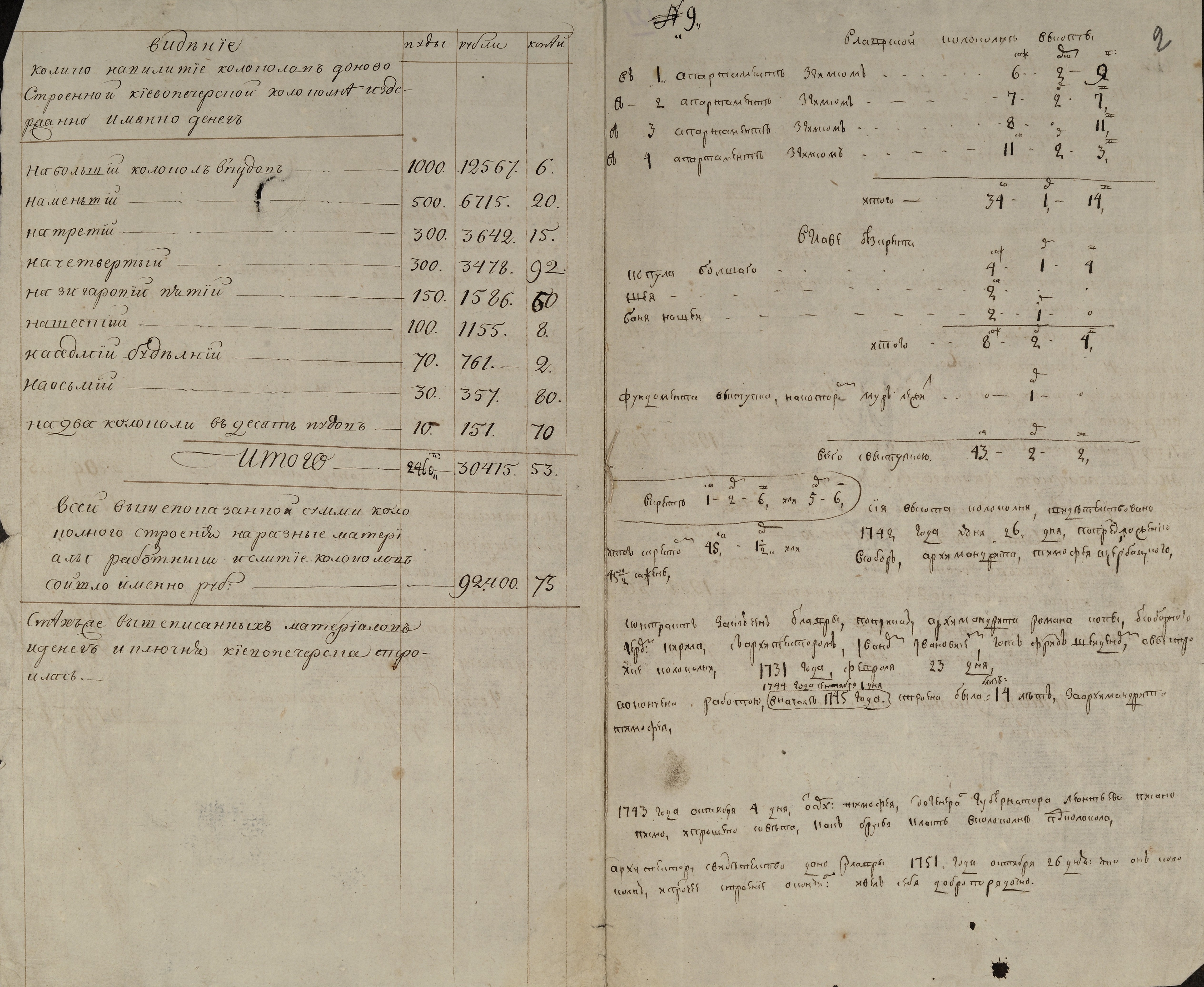 1746–1751 рр. – Екстракт (витяг) з книги витрат на будівництво Великої лаврської дзвіниці,