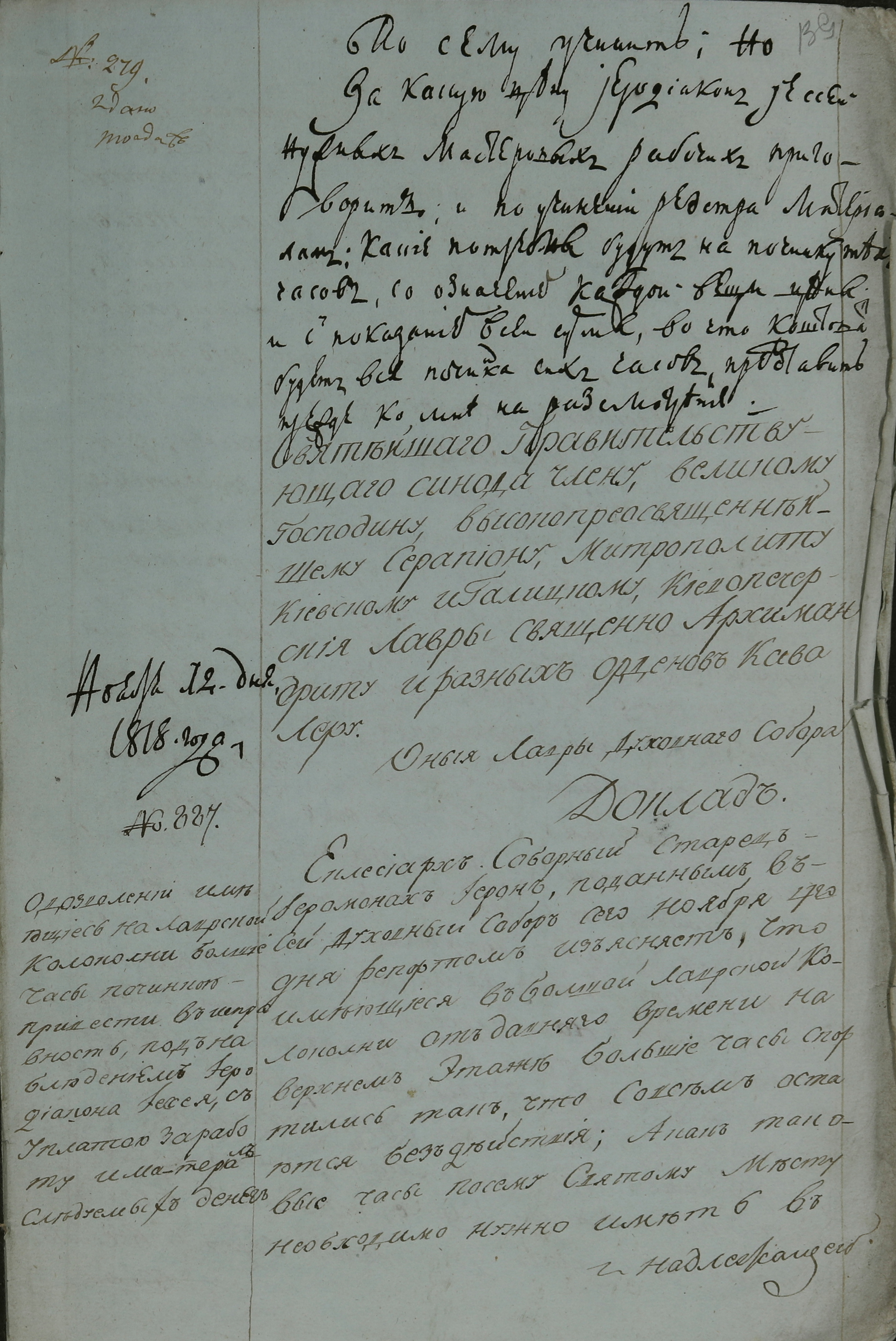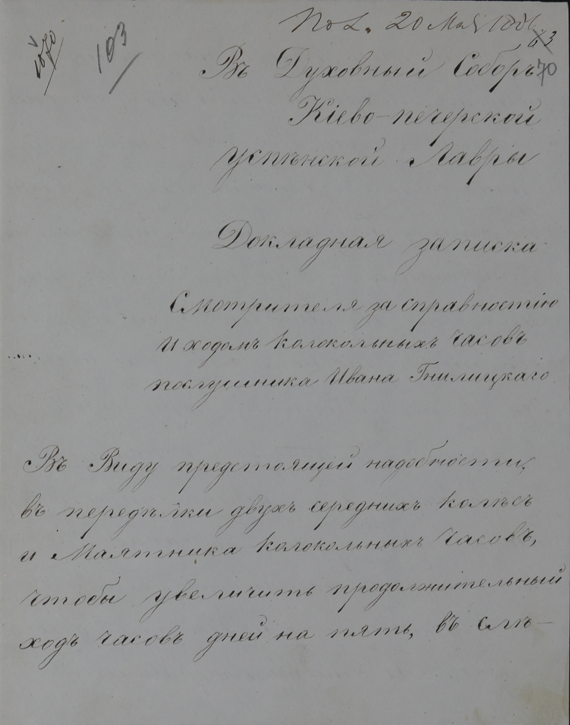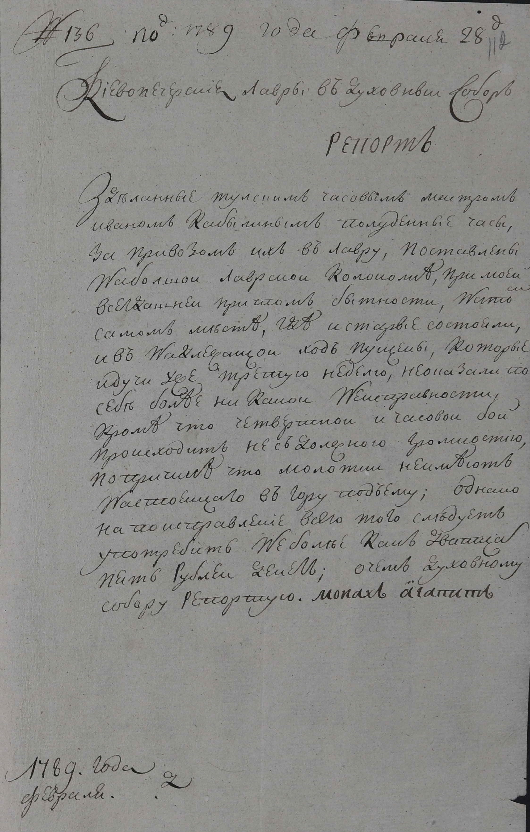1789–1886 рр. – Рапорт лаврського годинникаря ченця Агапіта про встановлення курантів майстра