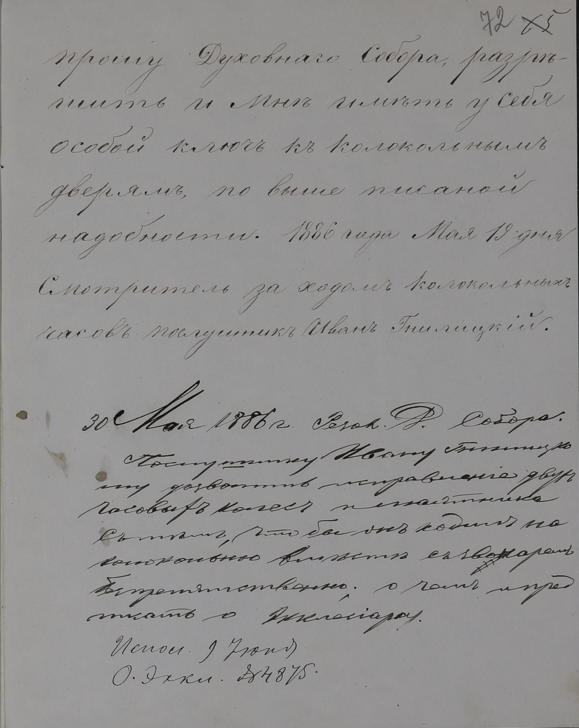 про дублікат ключів від дверей дзвіниці, що знаходились тільки у дзвонаря, та свідчення про стан