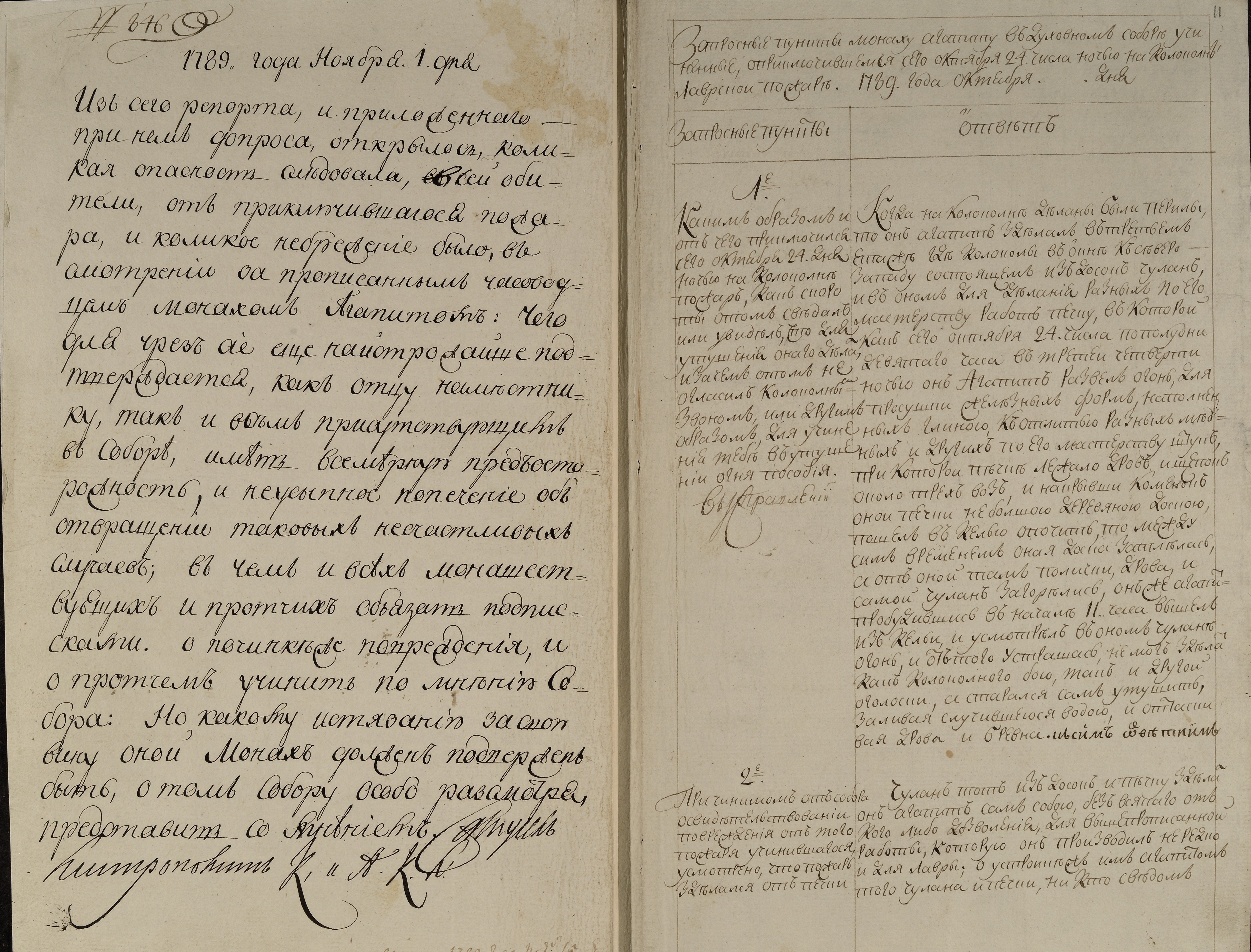 1789 р. – Документи щодо пожежі, яка виникла через недогляд за грубкою у Великій лаврській