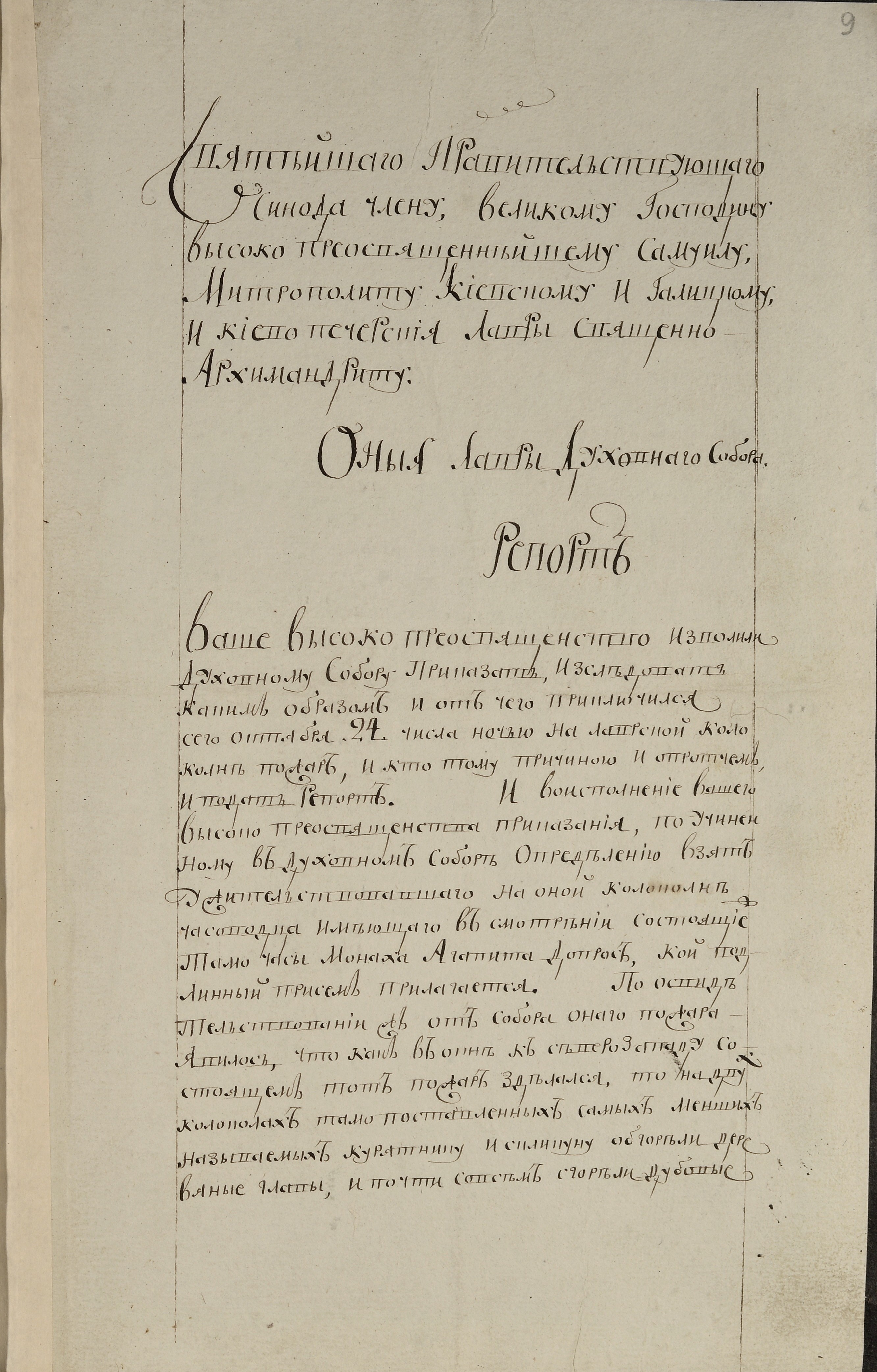 1741 р., червень. – Донесення Йогана Ґоттфріда Шеделя архімандриту Тимофію Щербацькому та членам