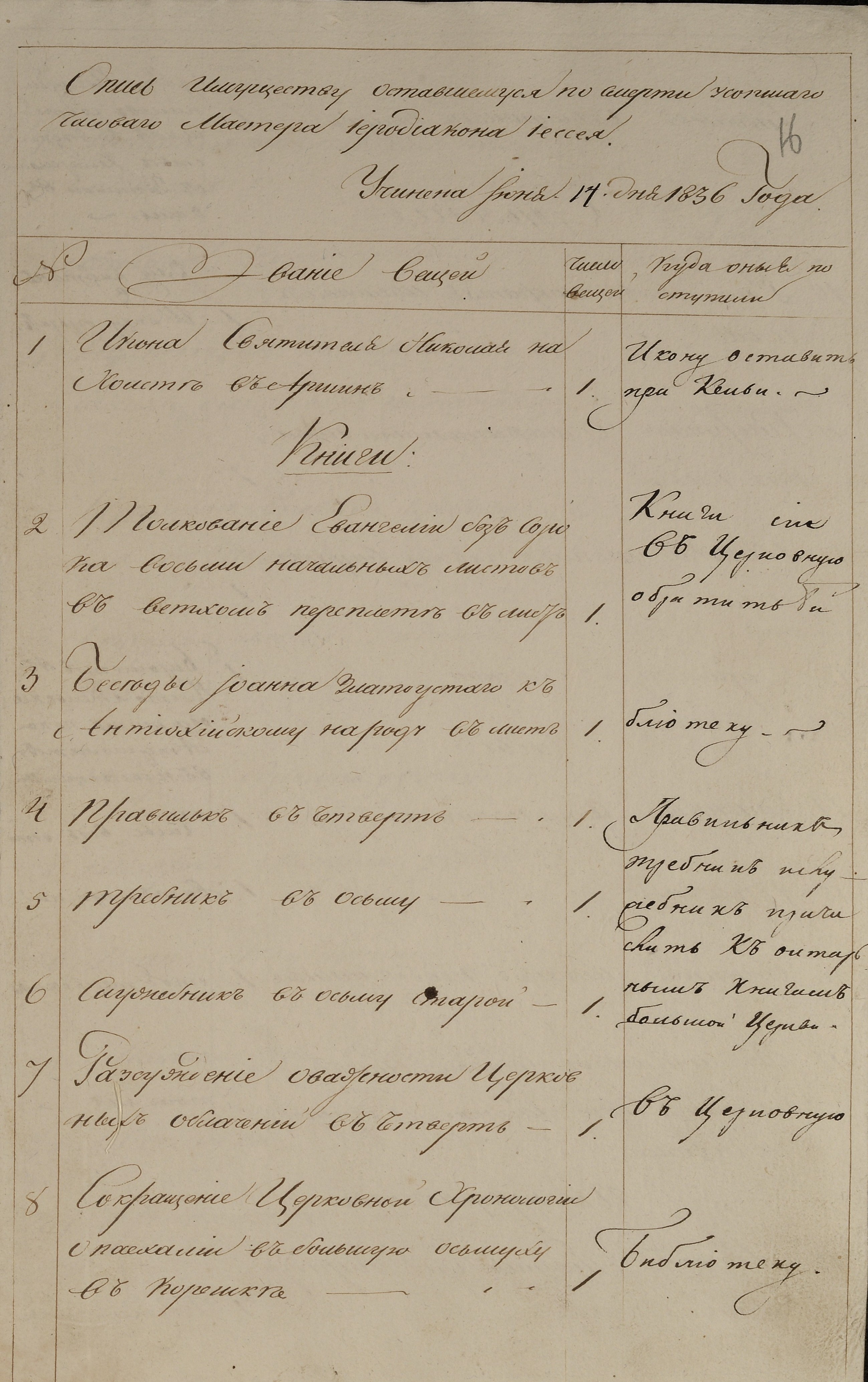 1836 р., червень. – Опис майна, що залишилося після смерті годинникаря ієродиякона Ієсея,