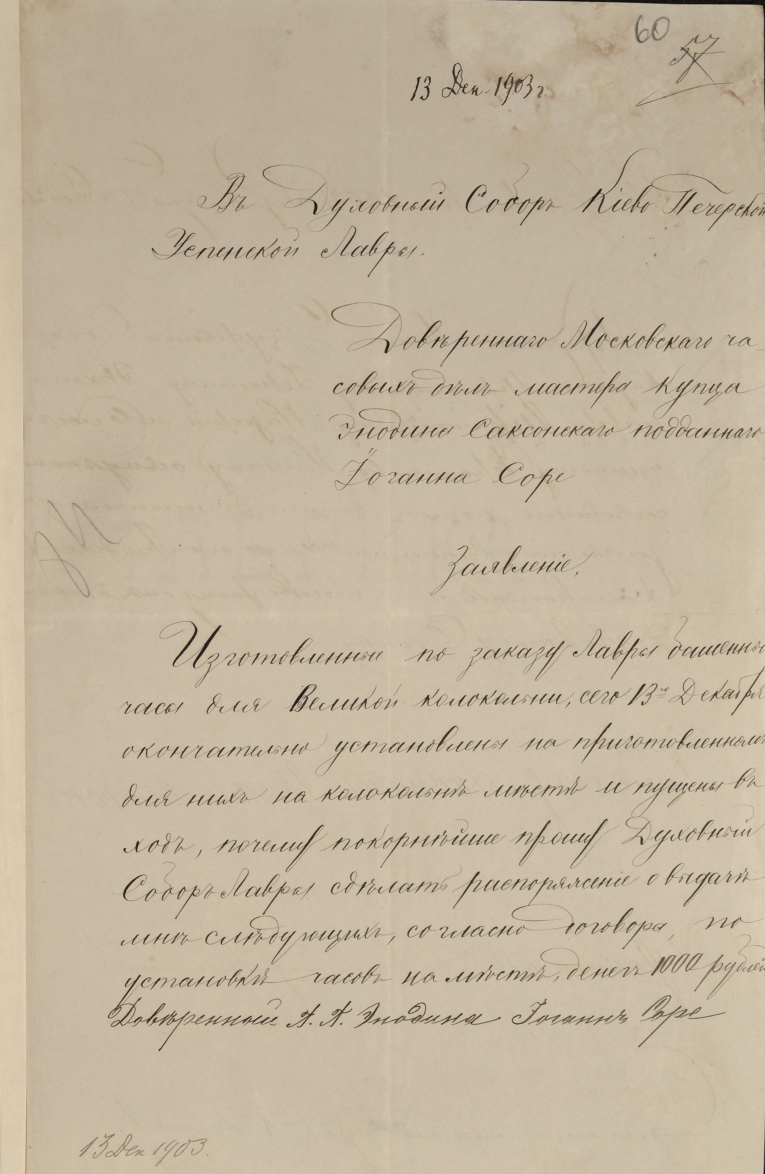 1903 р., грудня 13. – Документи щодо встановлення саксонським підданим Йоганом Соре