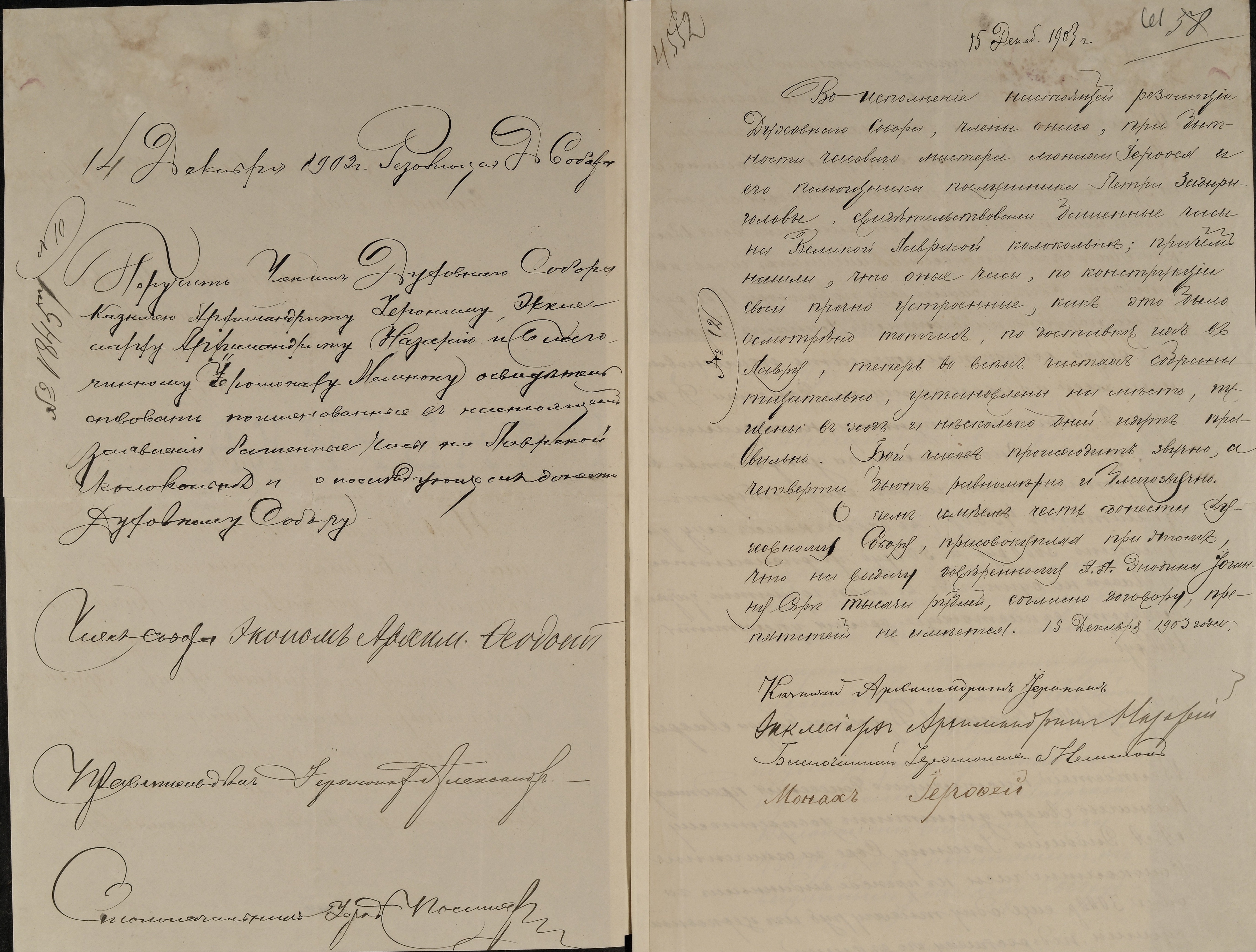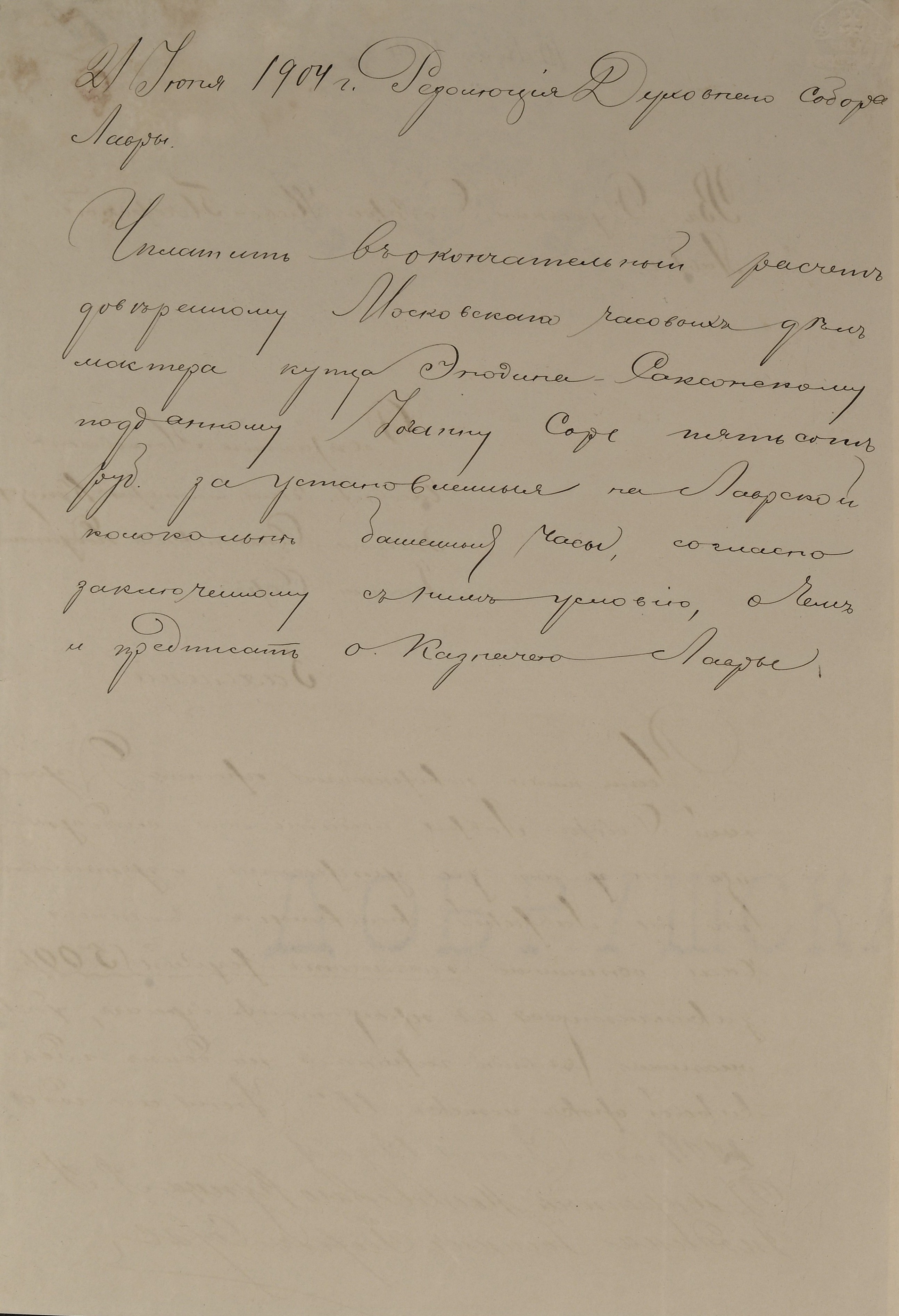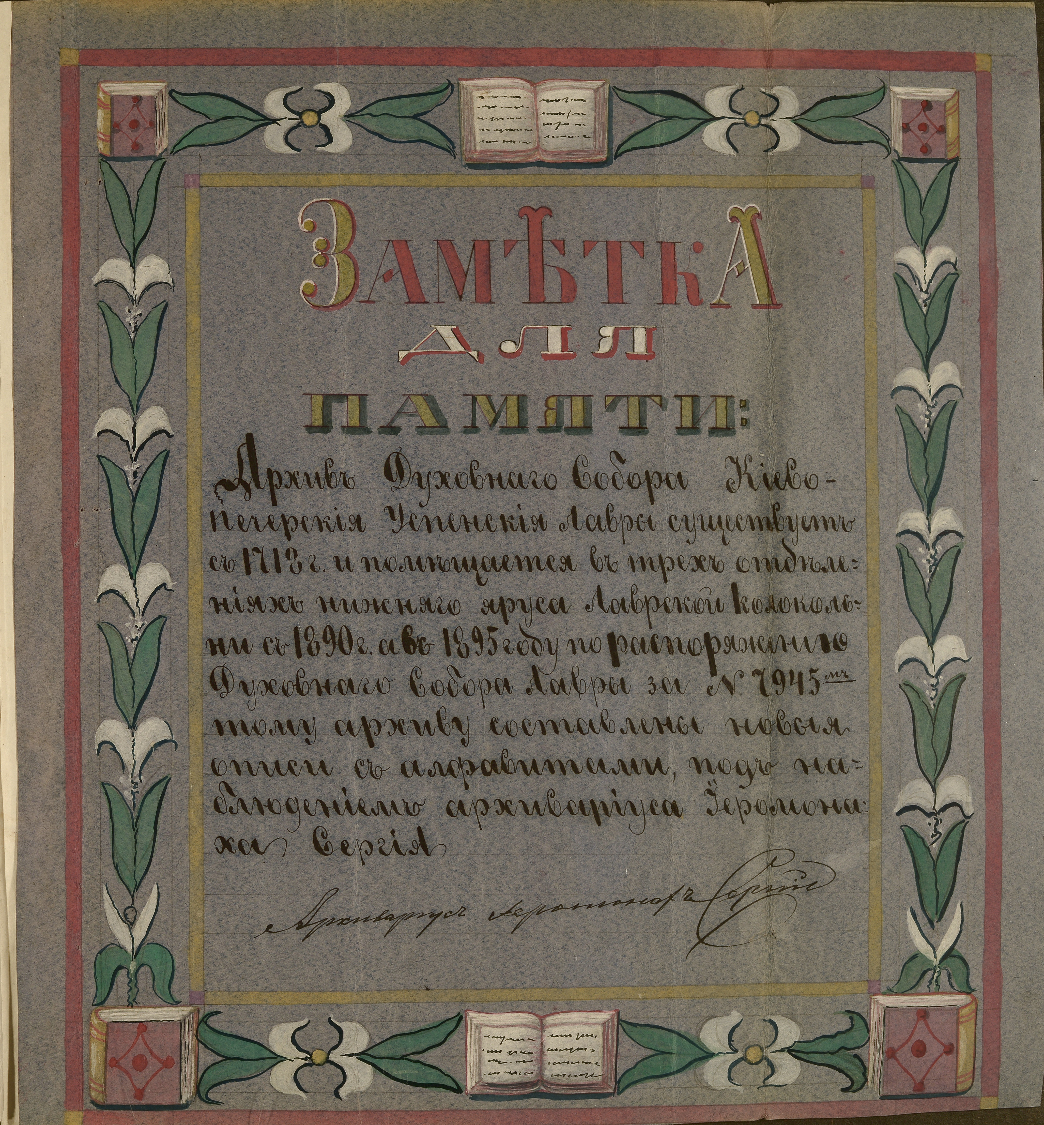 н.р. 1895 р. – «Нотатка для пам’яті» з інформацією про розміщення архіву Духовного Собору