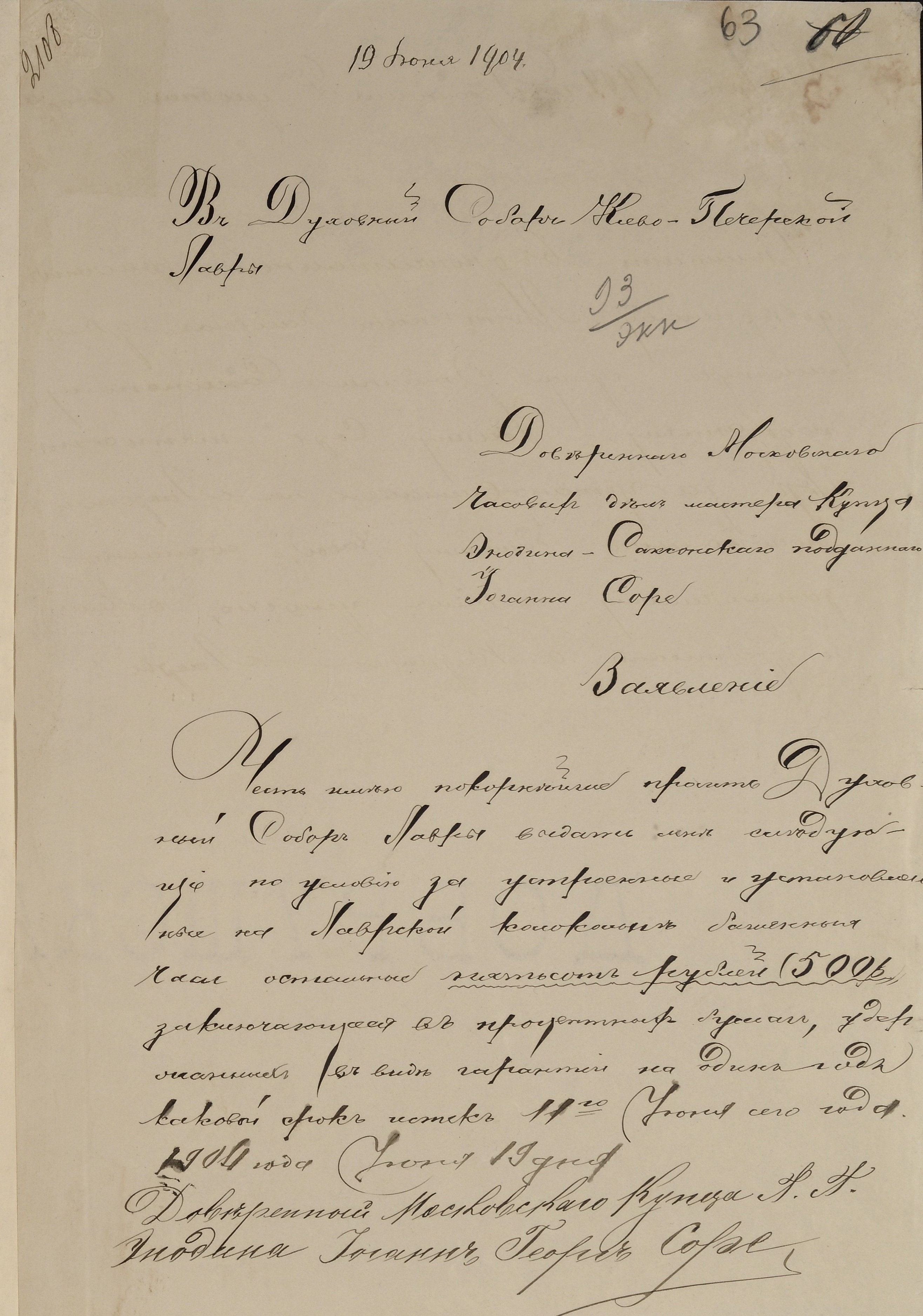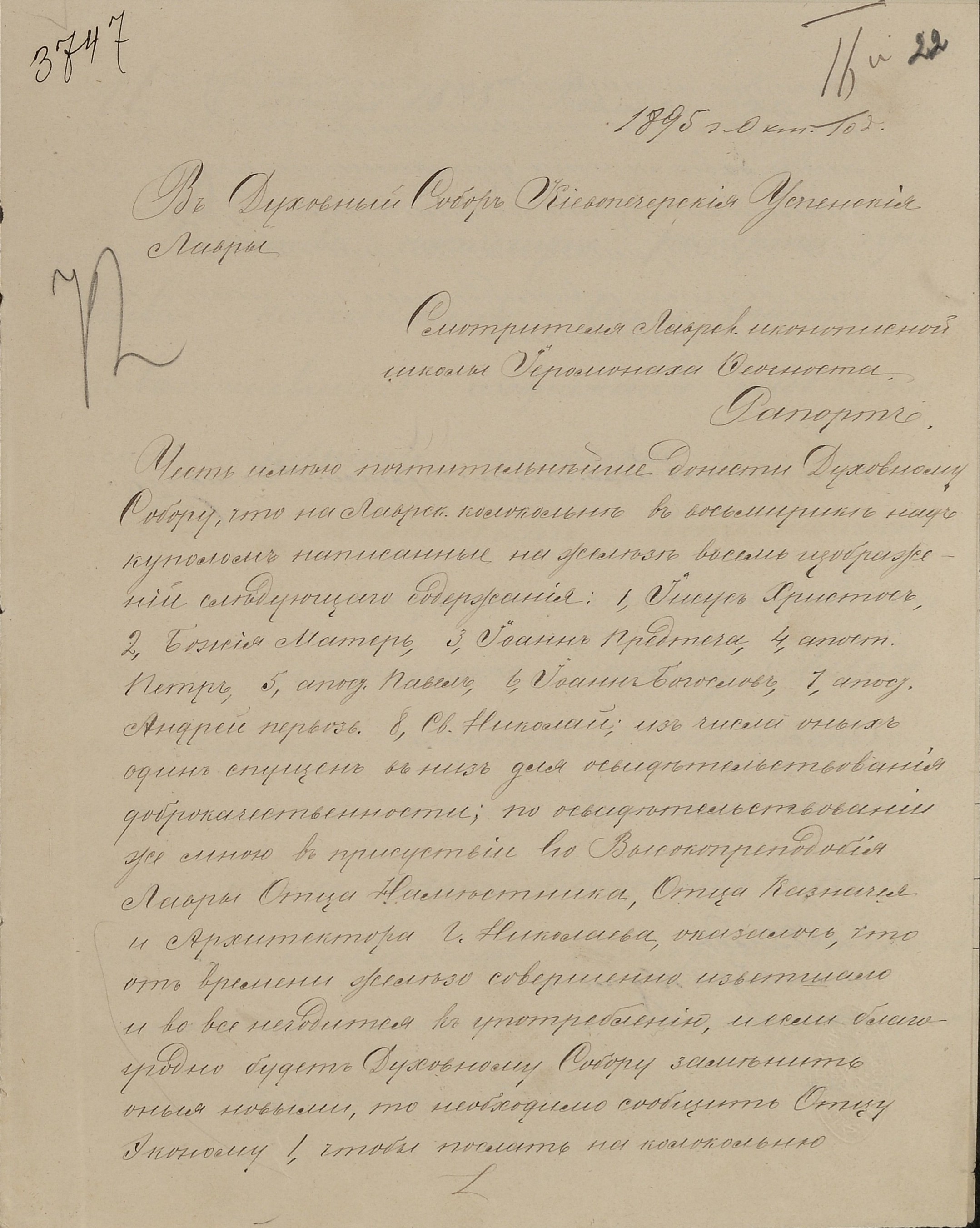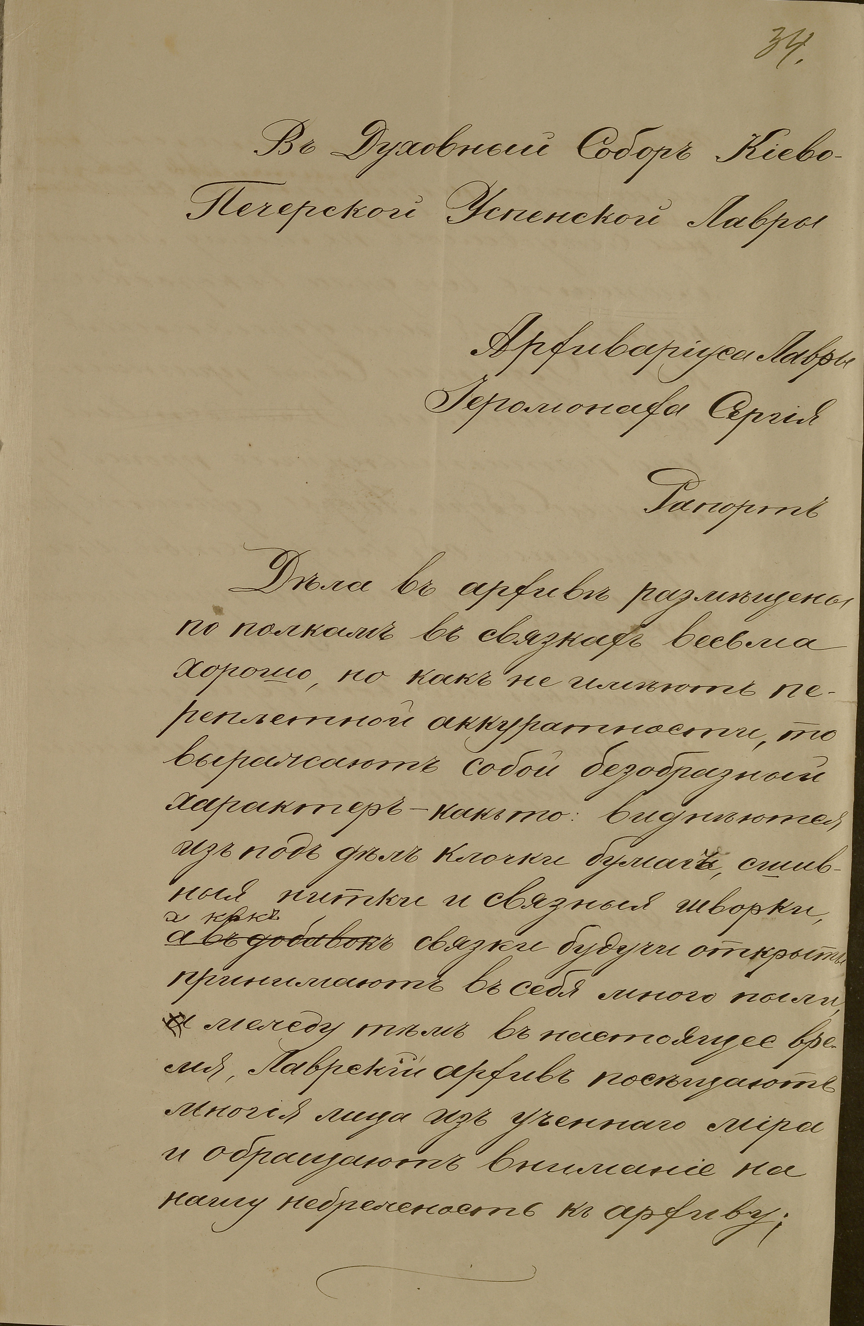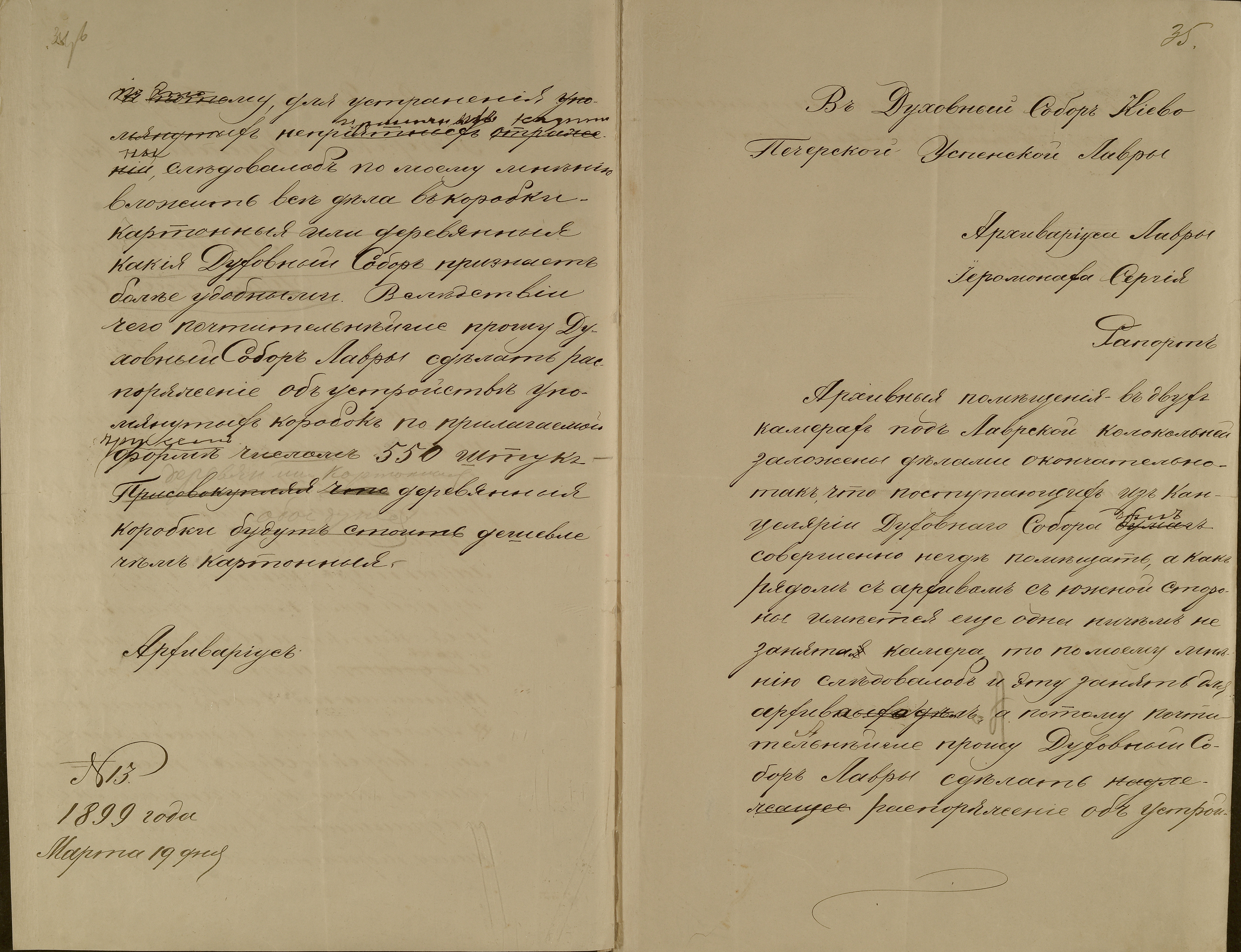 1899 р., березня 19. – Рапорти архіваріуса Києво-Печерської лаври
