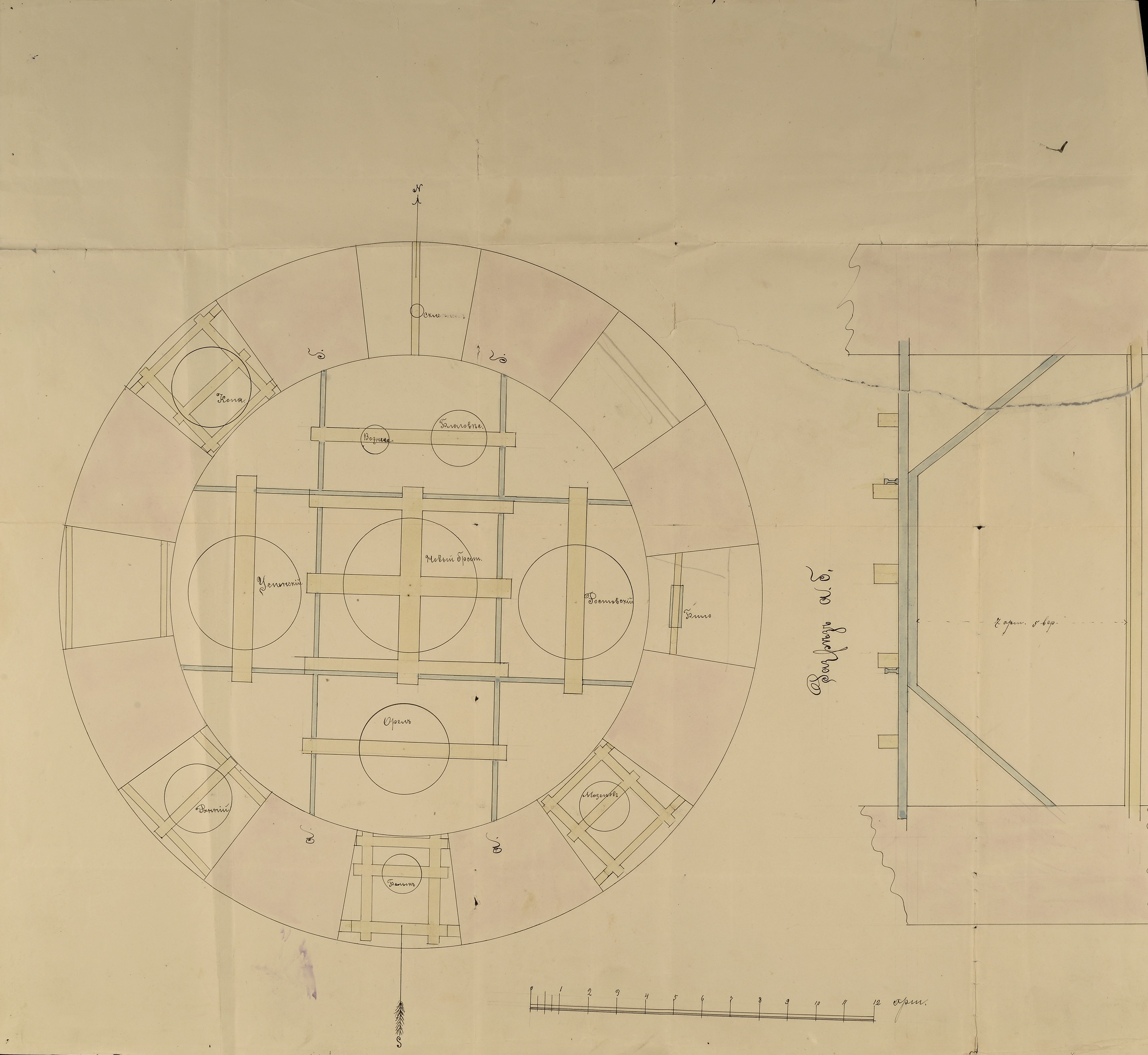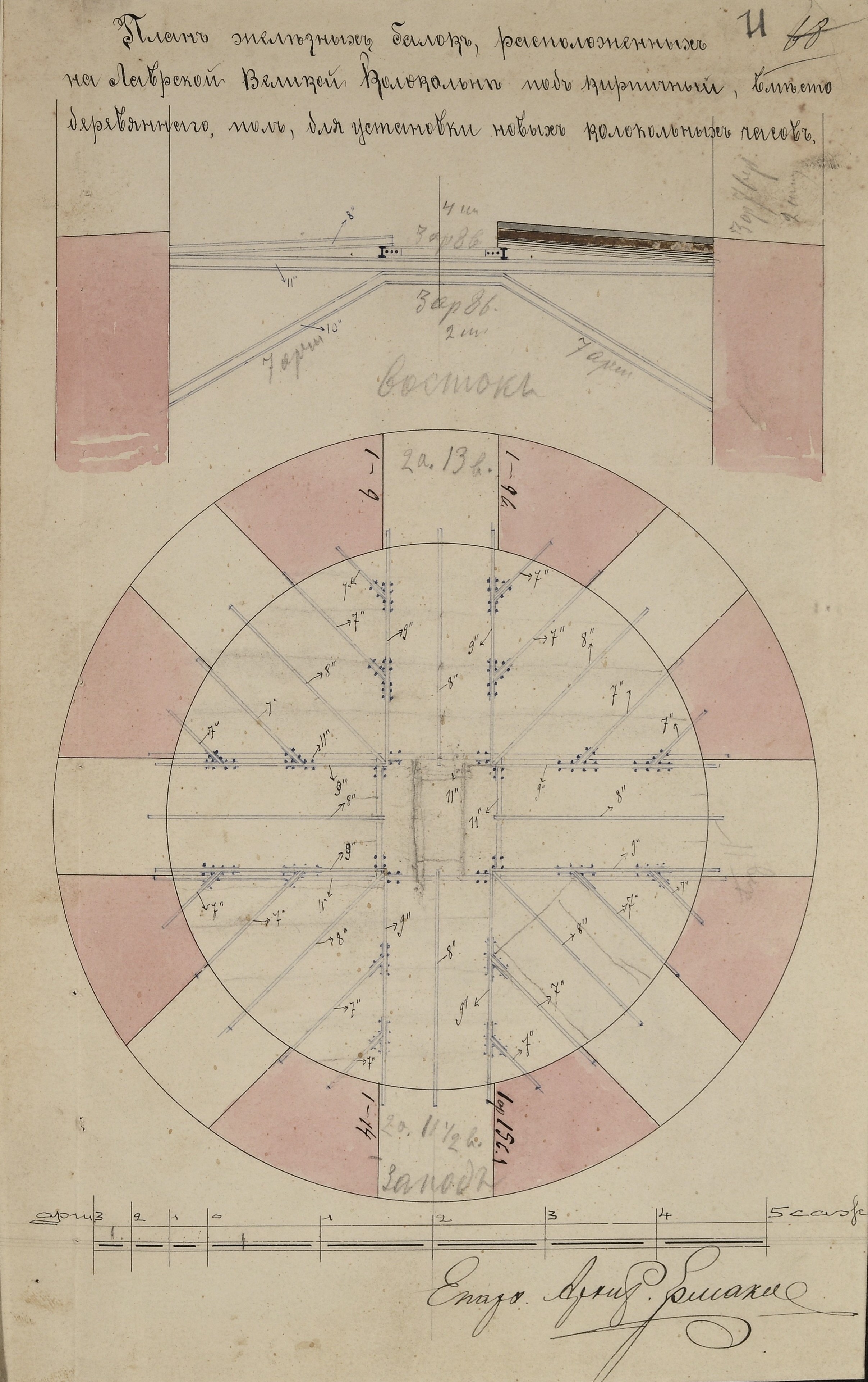 1900 р. – Схема розташування на третьому, «дзвонному» ярусі била і дзвонів, серед яких з