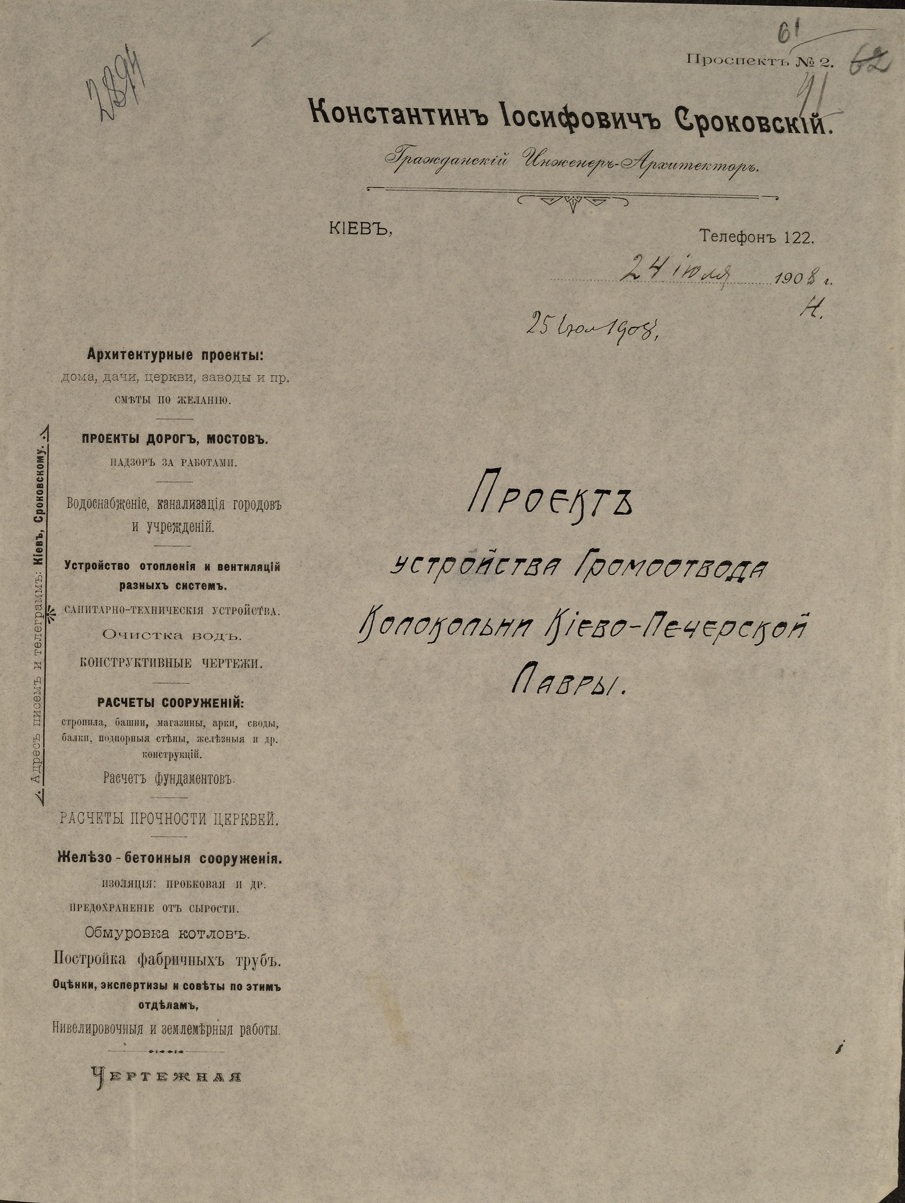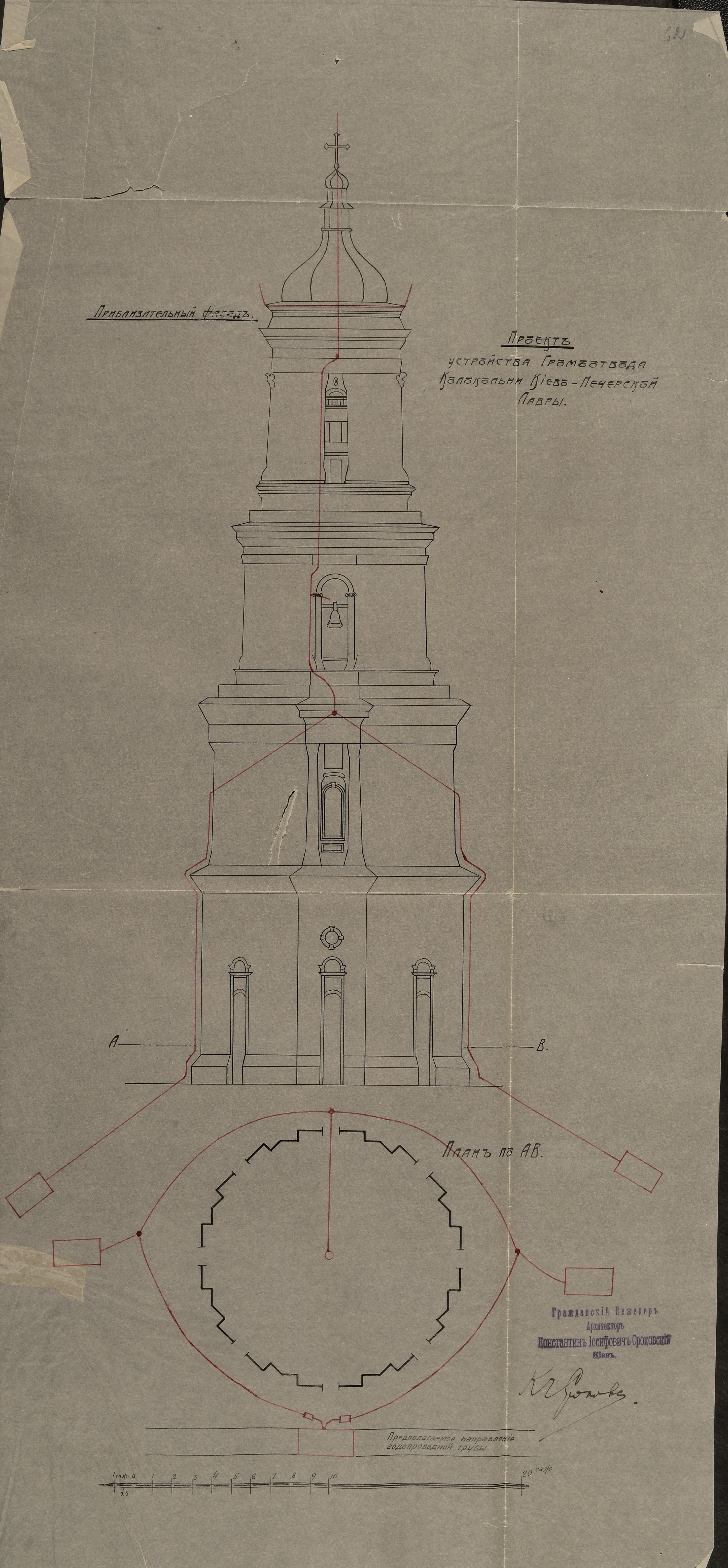 1908 р., липня 24. – Проєкт громовідведення після руйнування колони 3-го ярусу й пошкодження