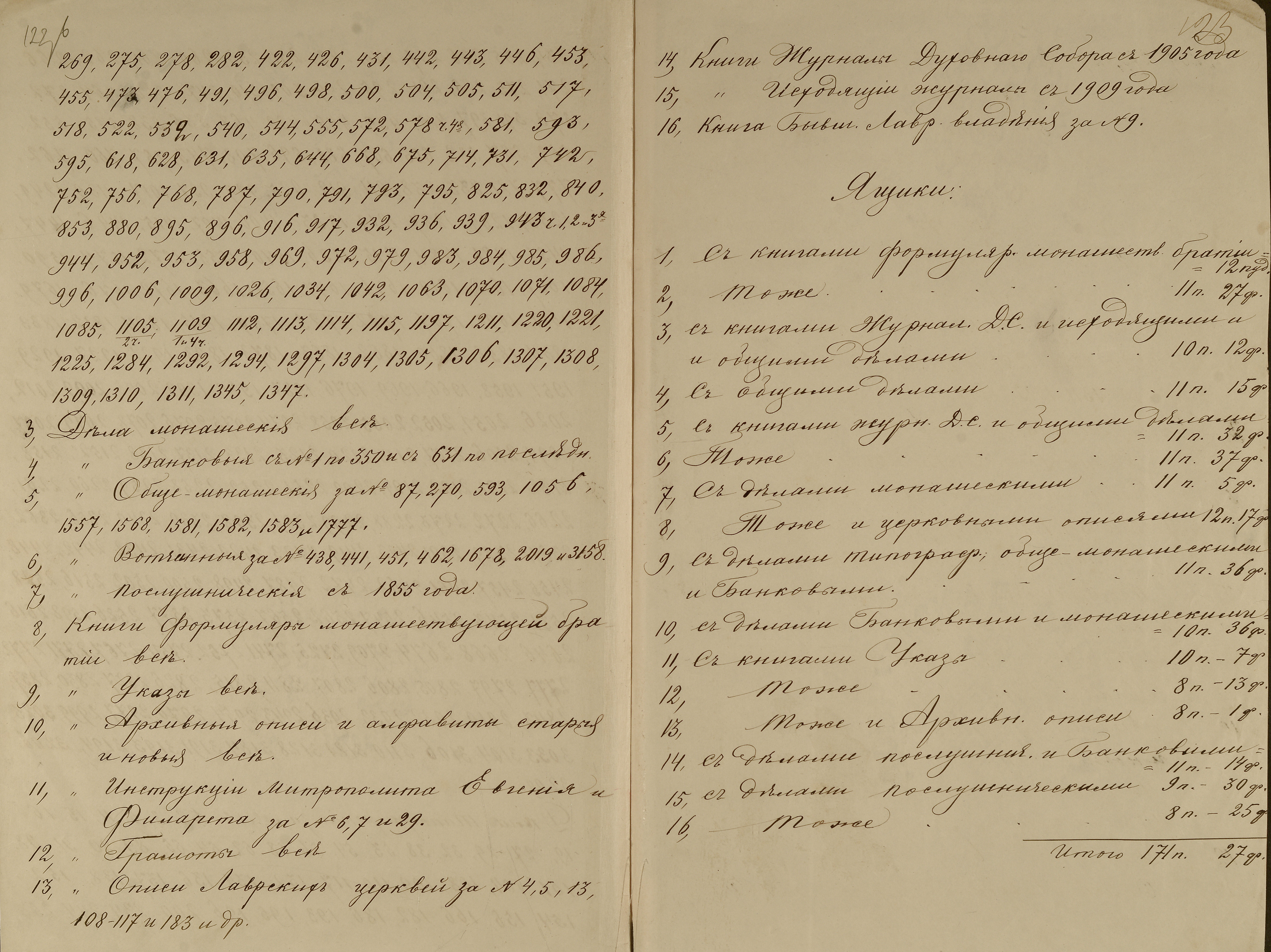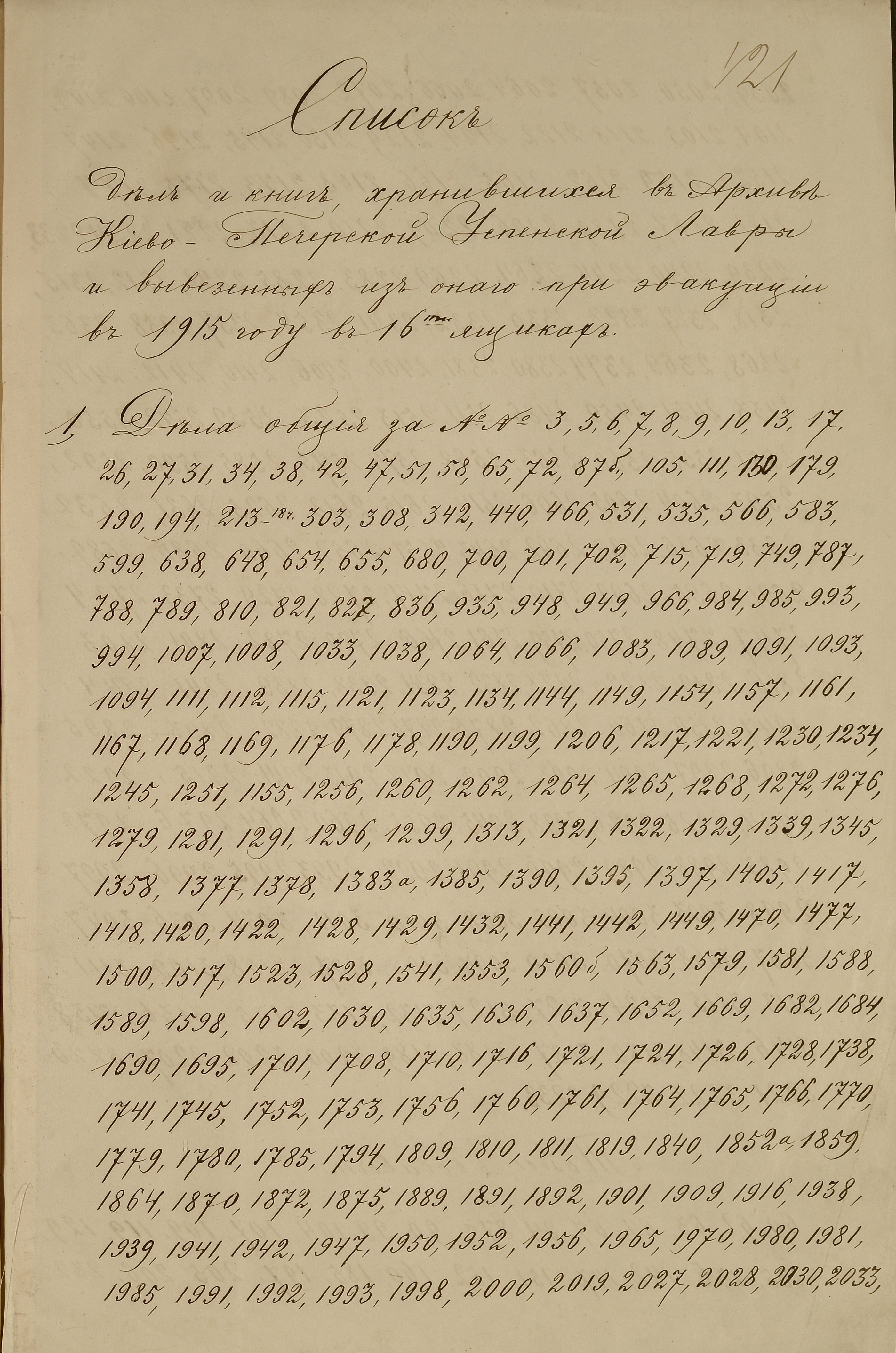 1915 р., травня 7. - Перелік справ і книг, що зберігалися в Архіві Києво-Печерської Успенської