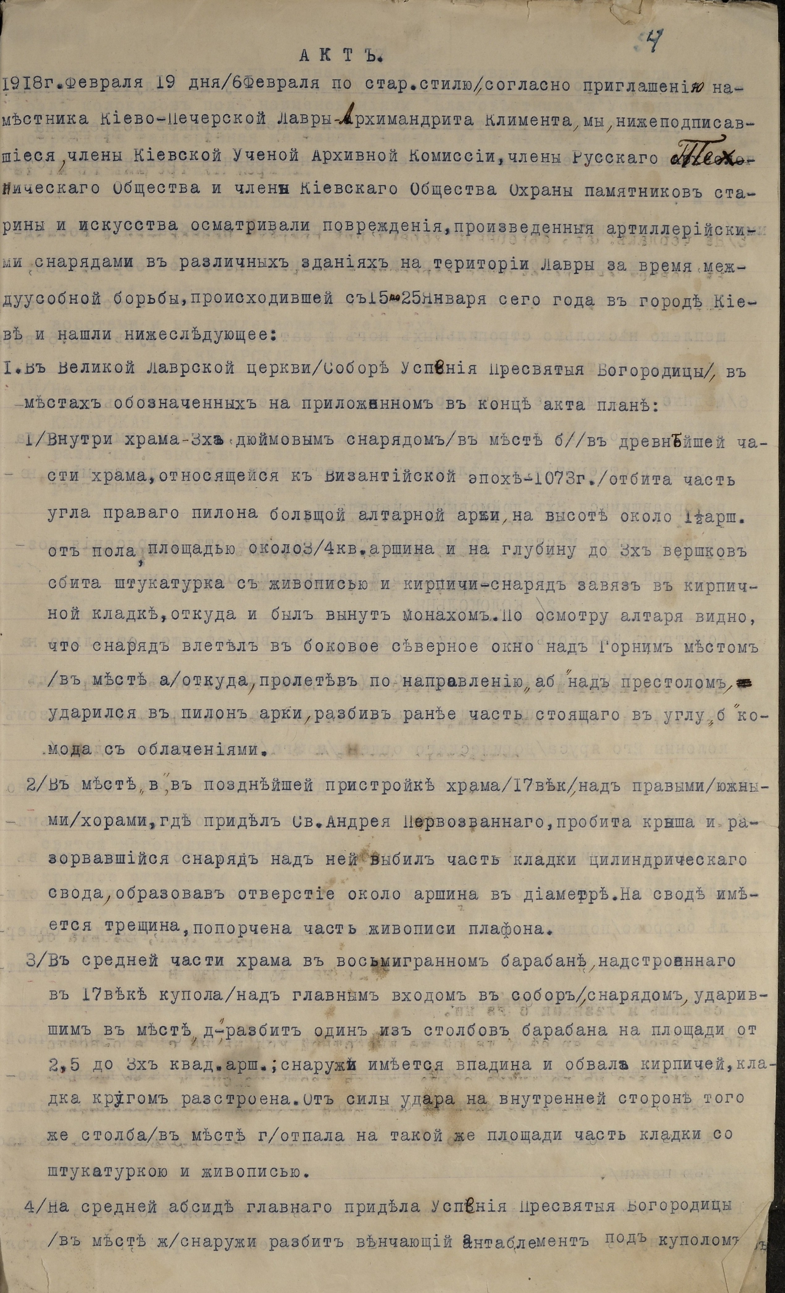 1918 р., лютий – 1919 р., травень. – Акт комісії Товариства охорони пам’яток старовини