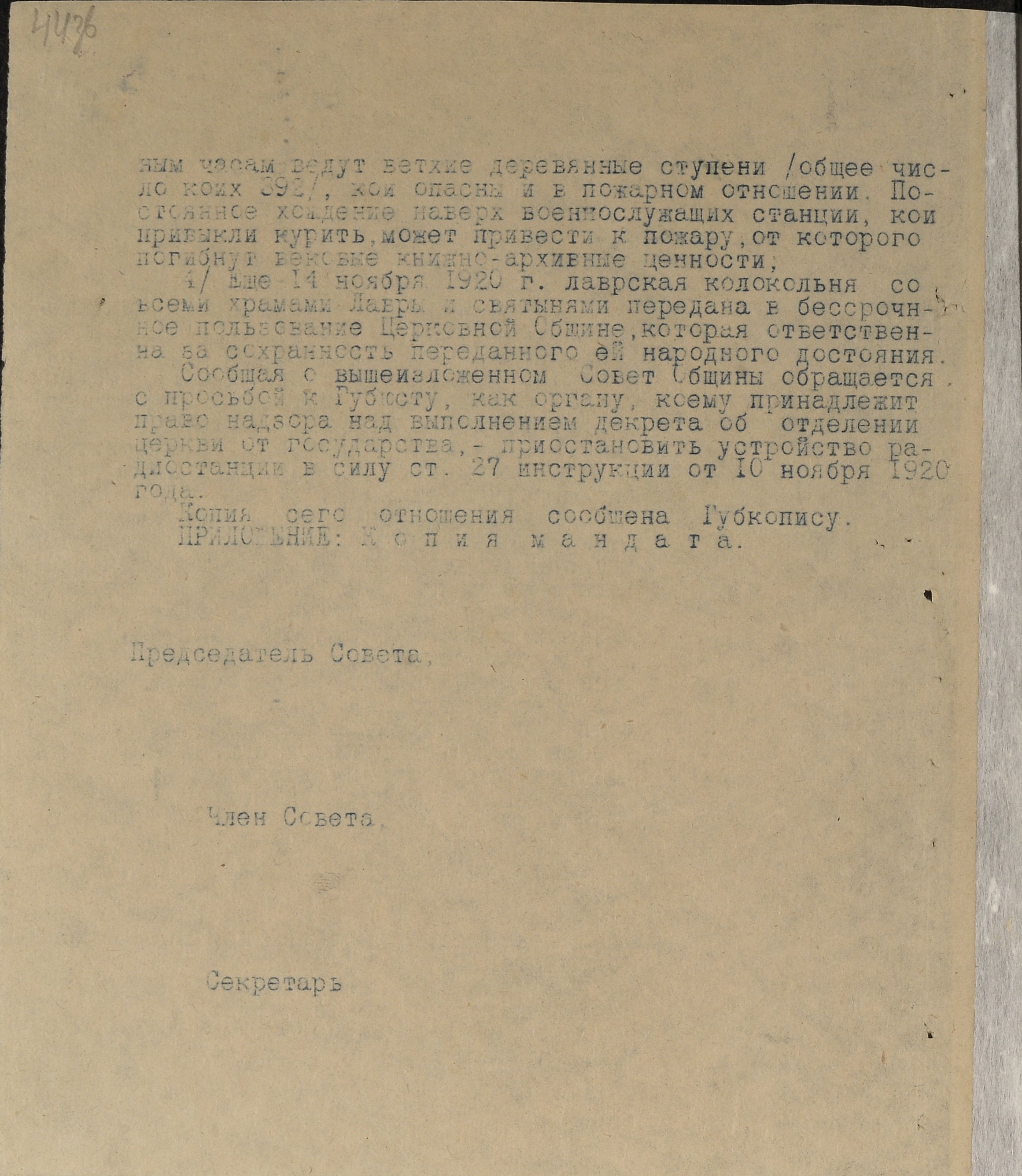 пам’яток мистецтва та старовини («Губкопису») Раді Церковної громади «Києво-Печерська Успенська Лавра»