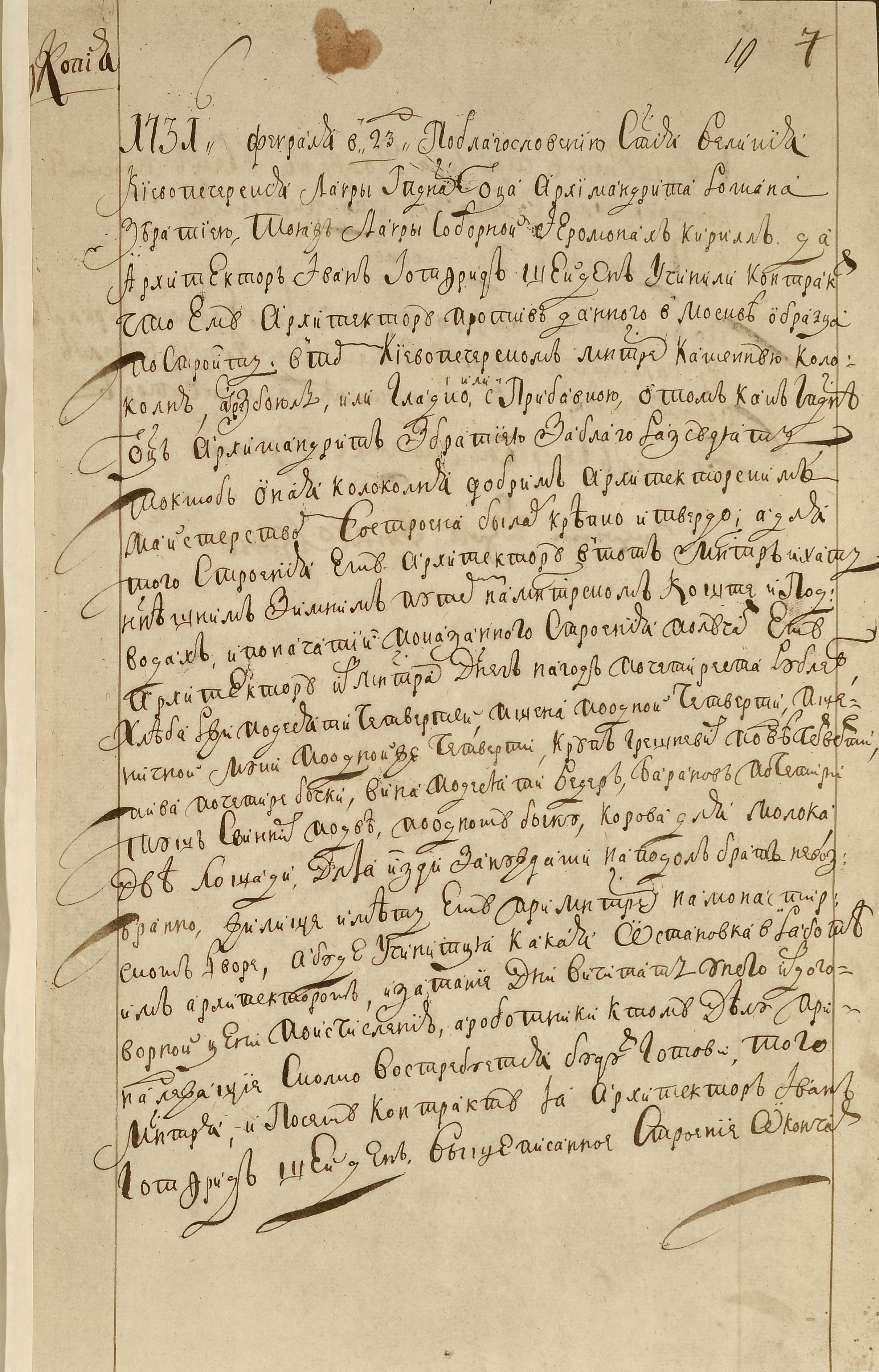 1731 р., лютого 23. – Копія контракту укладеного між архімандритом Києво-Печерської лаври