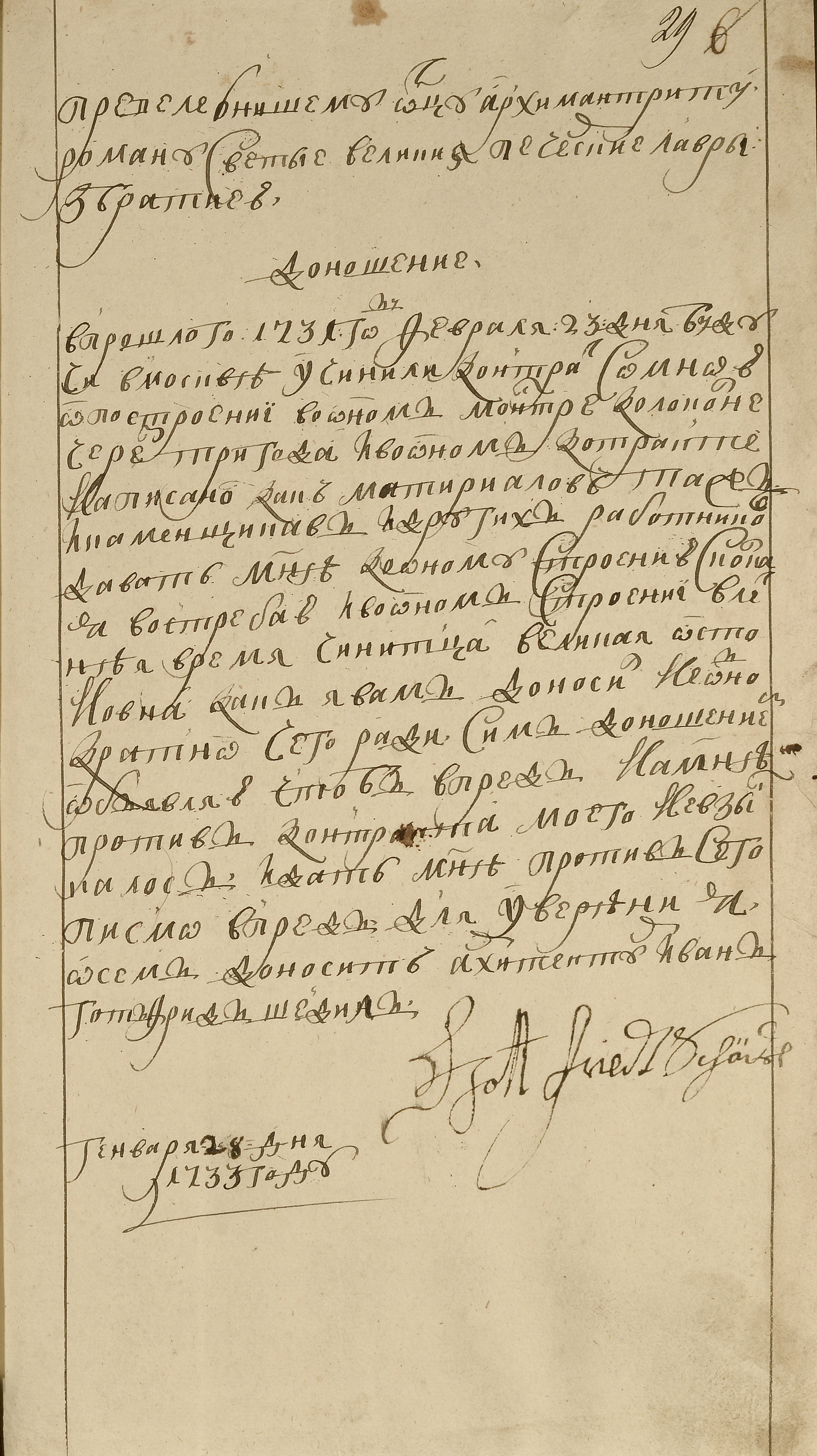 1733 р., січня 28., 1740 р., травня 31. – Пояснення архітектора Йогана Ґоттфріда Шеделя архімандриту