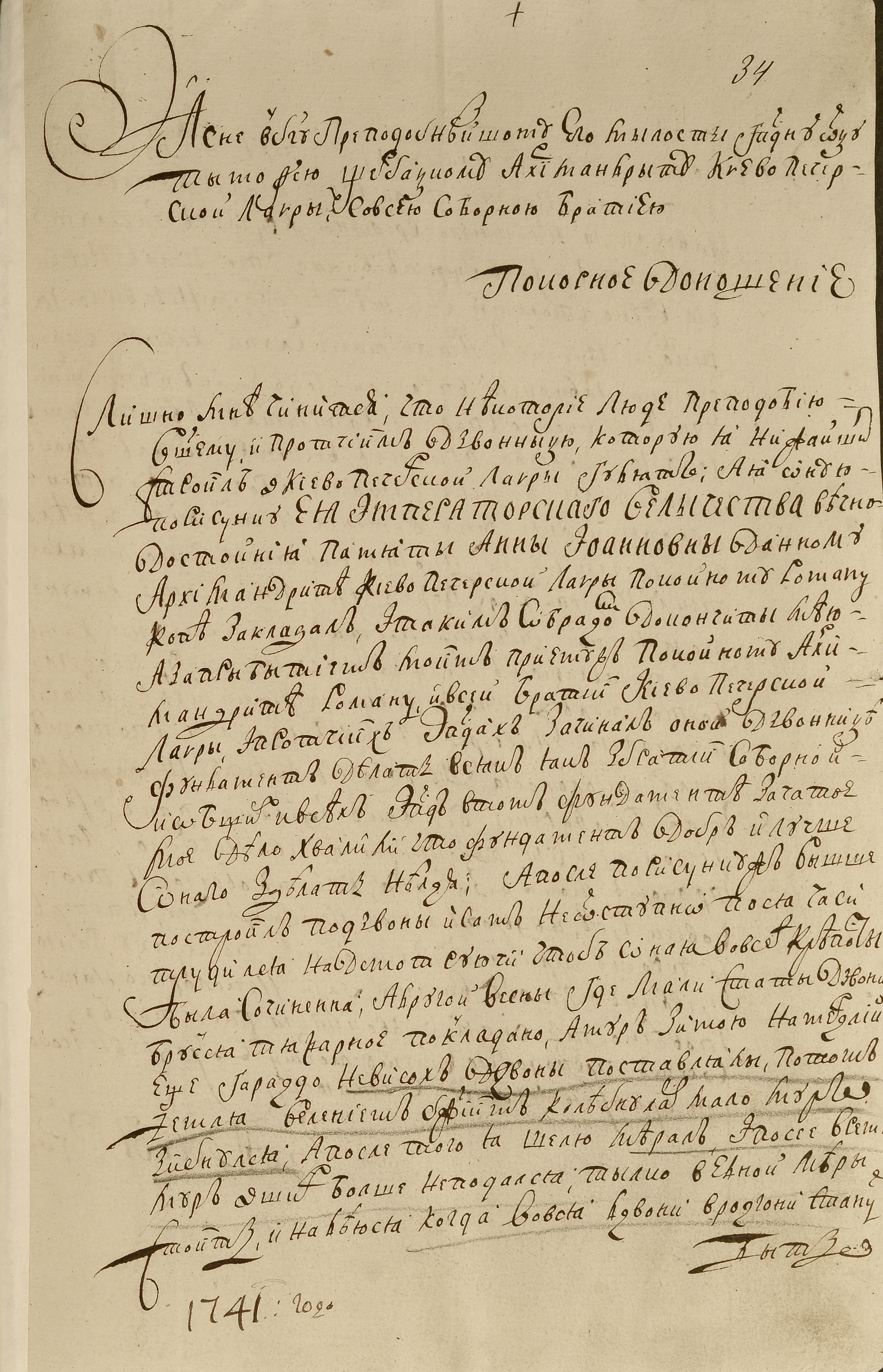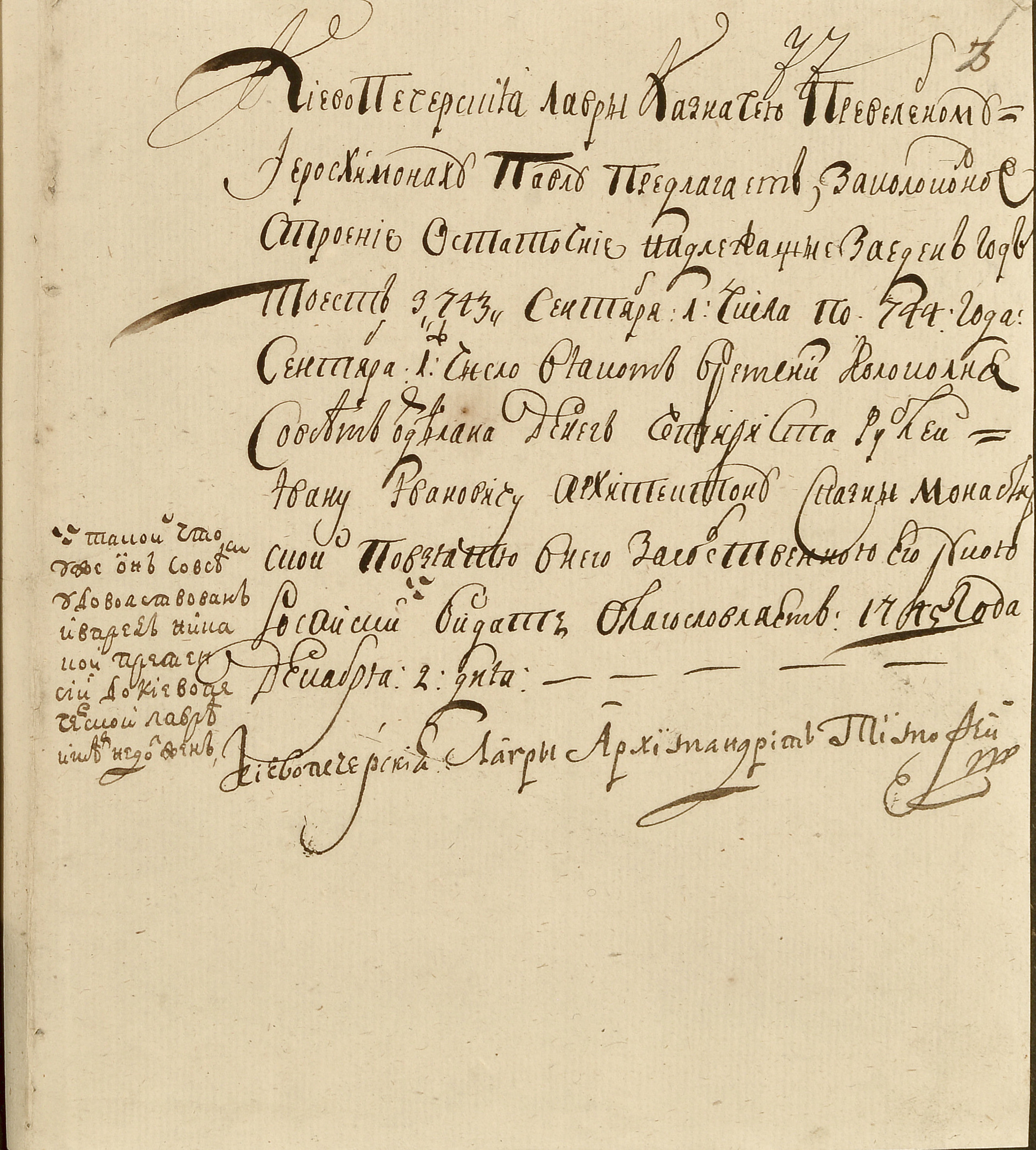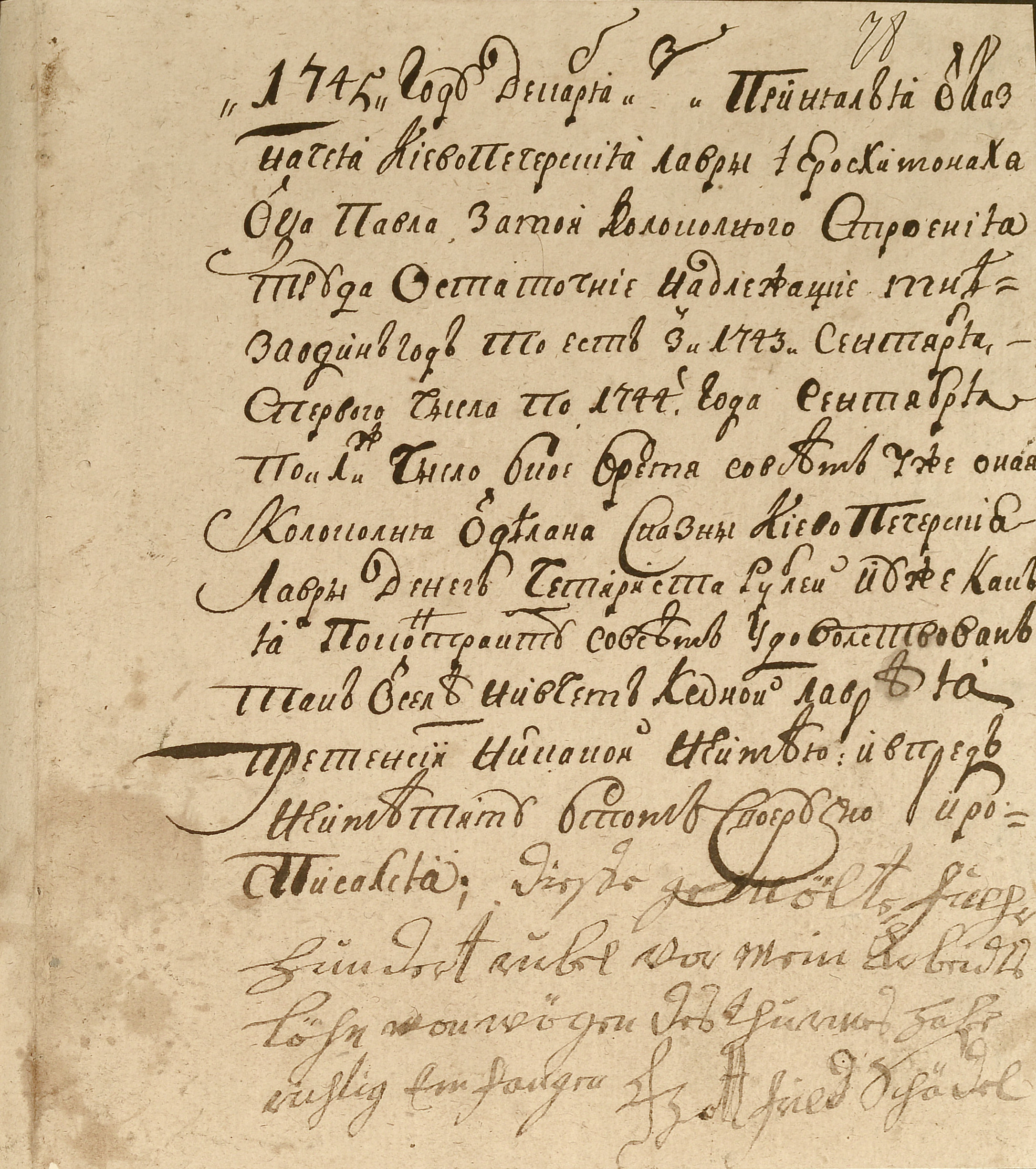 1745 р, жовтень, грудень. – Претензії Духовного собору Києво-Печерської лаври щодо втіленого