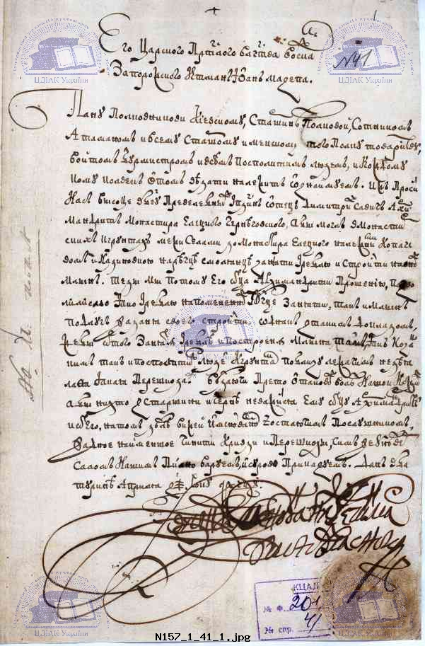 (ф. 157, оп. 1, спр. 41, арк. 1)