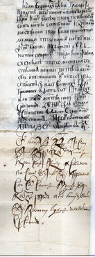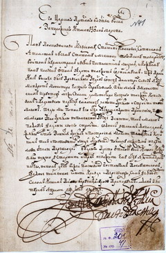1698 р., квітня 17. Батурин. – Фундуш гетьмана Івана Мазепи, наданий на прохання архімандрита Чернігівського Єлецького монастиря отця Димитрія Савича, на греблю на р. Смолянці для спорудження млина.