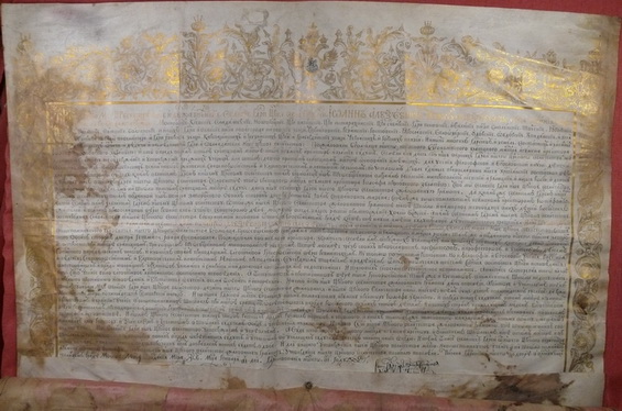 1694 р., січня 11. ̶ Грамота російських царів Івана і Петра Олексійовичів про підтвердження, на прохання київського митрополита Варлаама Ясинського та гетьмана Івана Мазепи, ігуменові Києво-Братського монастиря й ректорові Києво-Могилянської академії Іоасафу Крюковському давніх прав академії.