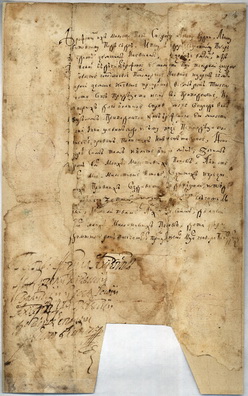 1631 р., грудня 30 (10 січня за н. ст.). ̶ Акт Київського Богоявленського братства, наданий києво-печерському архімандриту Петрові Могилі з викладенням умов, за якими відбулося об’єднання Братської і Лаврської шкіл. Перший аркуш.