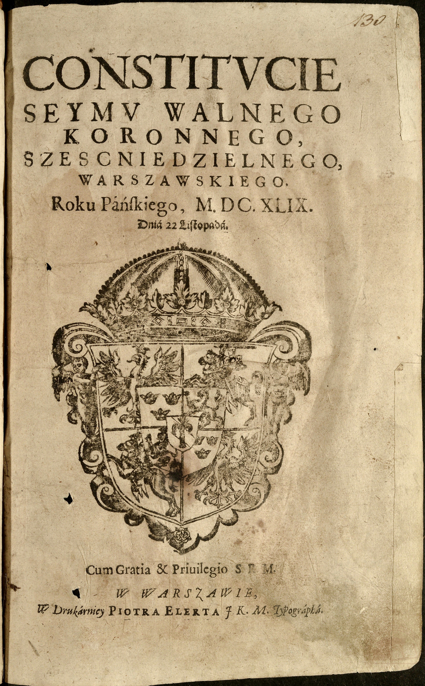 Конституція Варшавського сейму від 22 листопада 1649 р., на якому було ратифіковано Зборівський мирний договір. 12 лютого 1650 р.