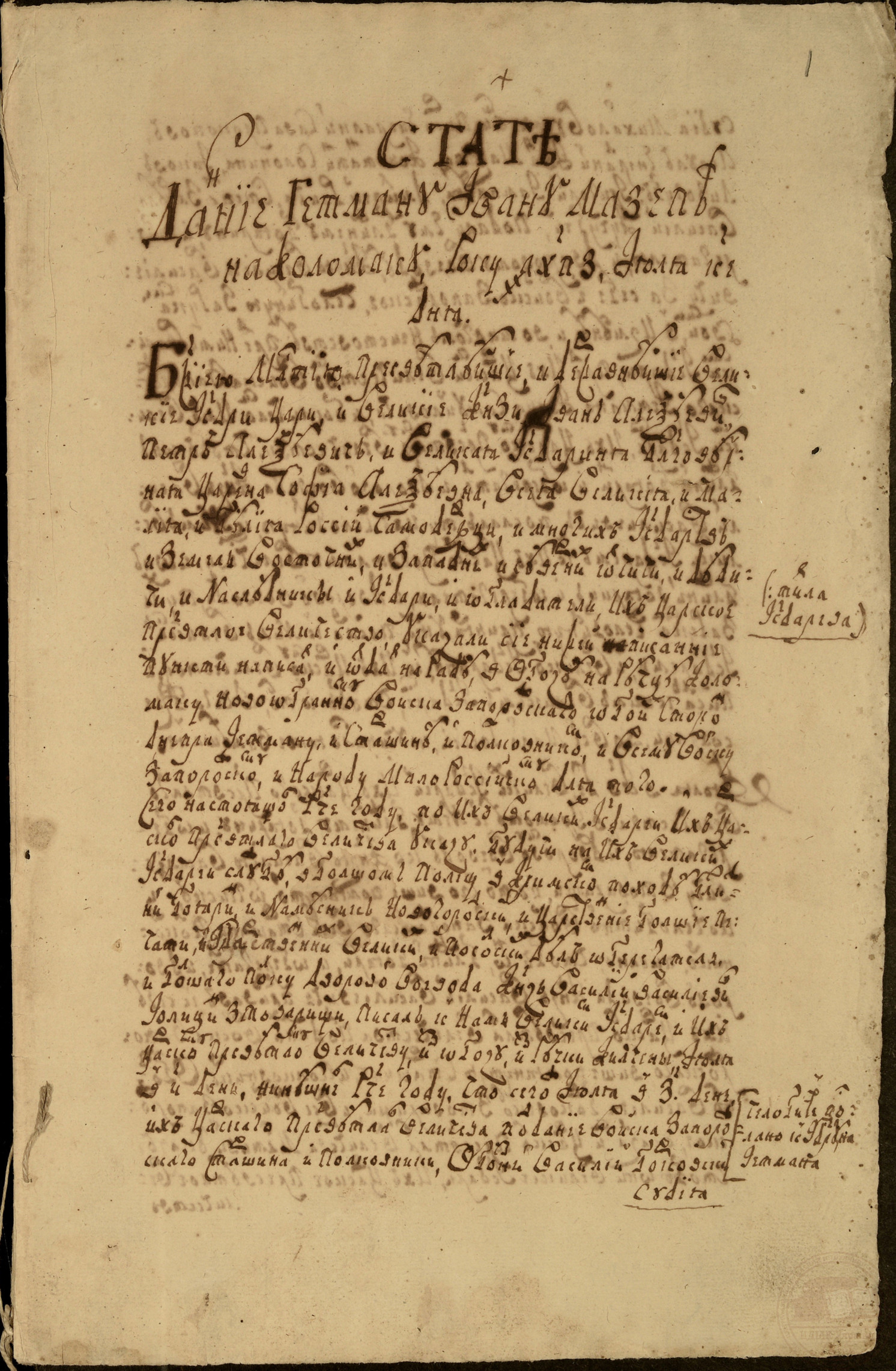 ЦДІАК України, ф. 221, оп. 1, спр. 186, арк. 1 і 1зв. Копія XVIII ст. Мова староукраїнська.