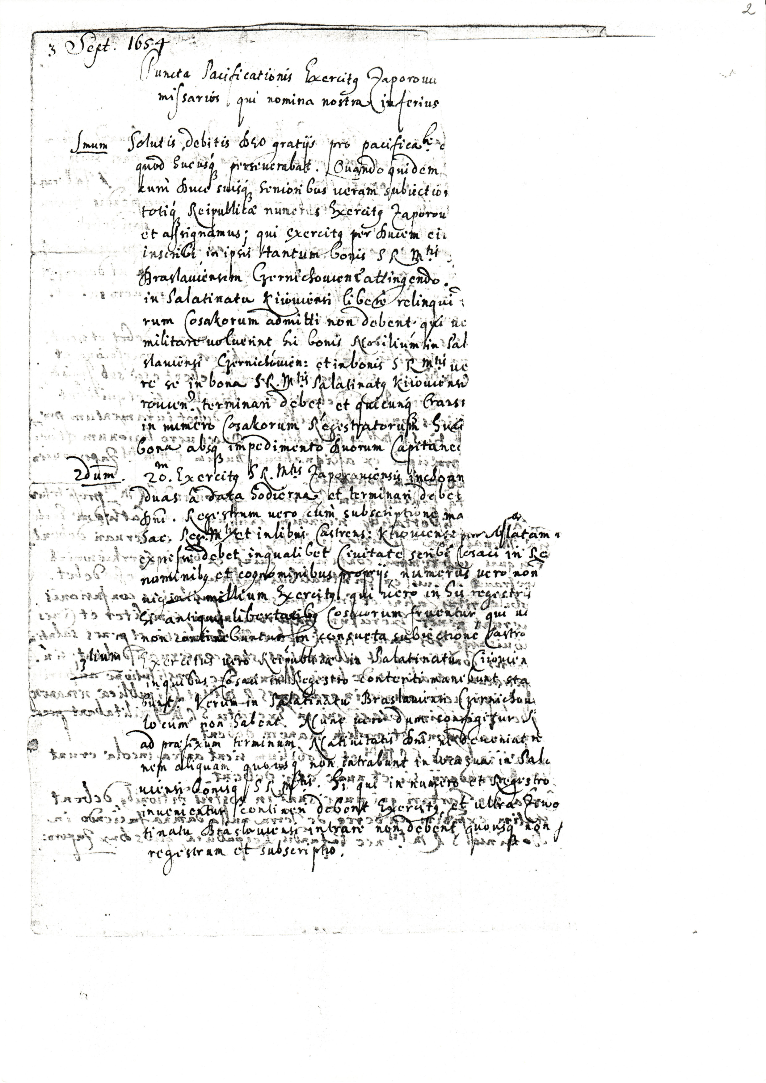ЦДІАК України, ф. 2236, оп. 1, спр. 1, арк. 2–4. Копія від 3 вересня 1654 р. Мова латинська.