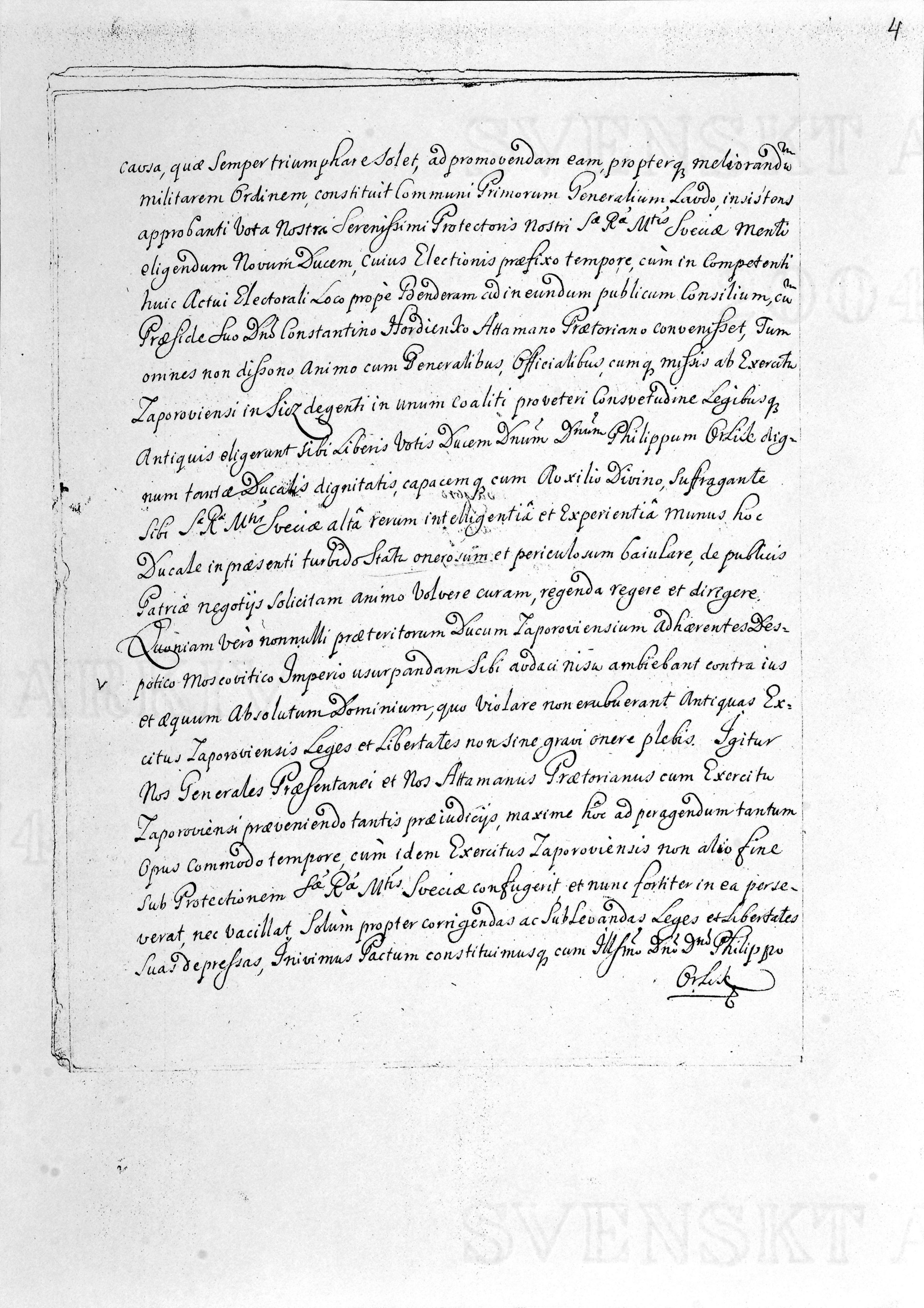 Копія з оригіналу, що зберігається в Національному архіві Швеції, м. Стокгольм, колекція «Cosacica». Мова латинська.