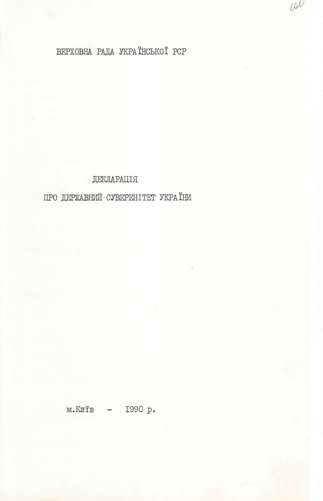 Декларація про державний суверенітет України. Київ, 16 липня 1990 р.