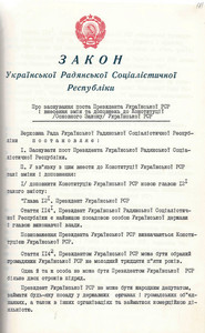 Закон Української РСР “Про заснування поста Президента Української РСР і внесення змін та доповнень до Конституції (Основного Закону) Української РСР”. Київ, 5 липня 1991 р.