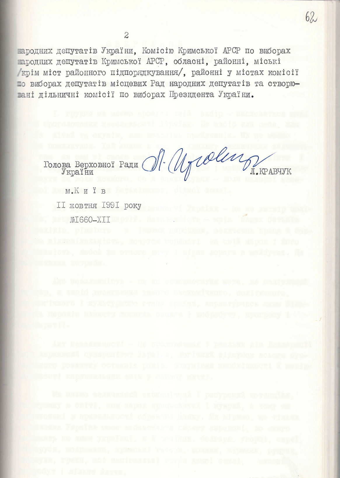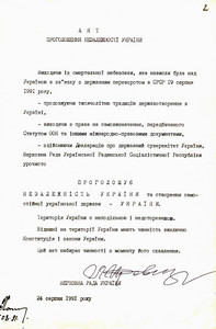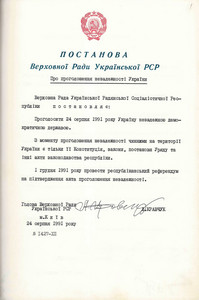 Акт проголошення незалежності України. Київ, 24 серпня 1991 р.