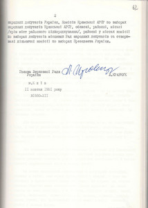 ЦДАВО України, ф. 1, оп. 16, спр. 4634, арк. 61-62. Оригінал. Машинопис. Мова українська.