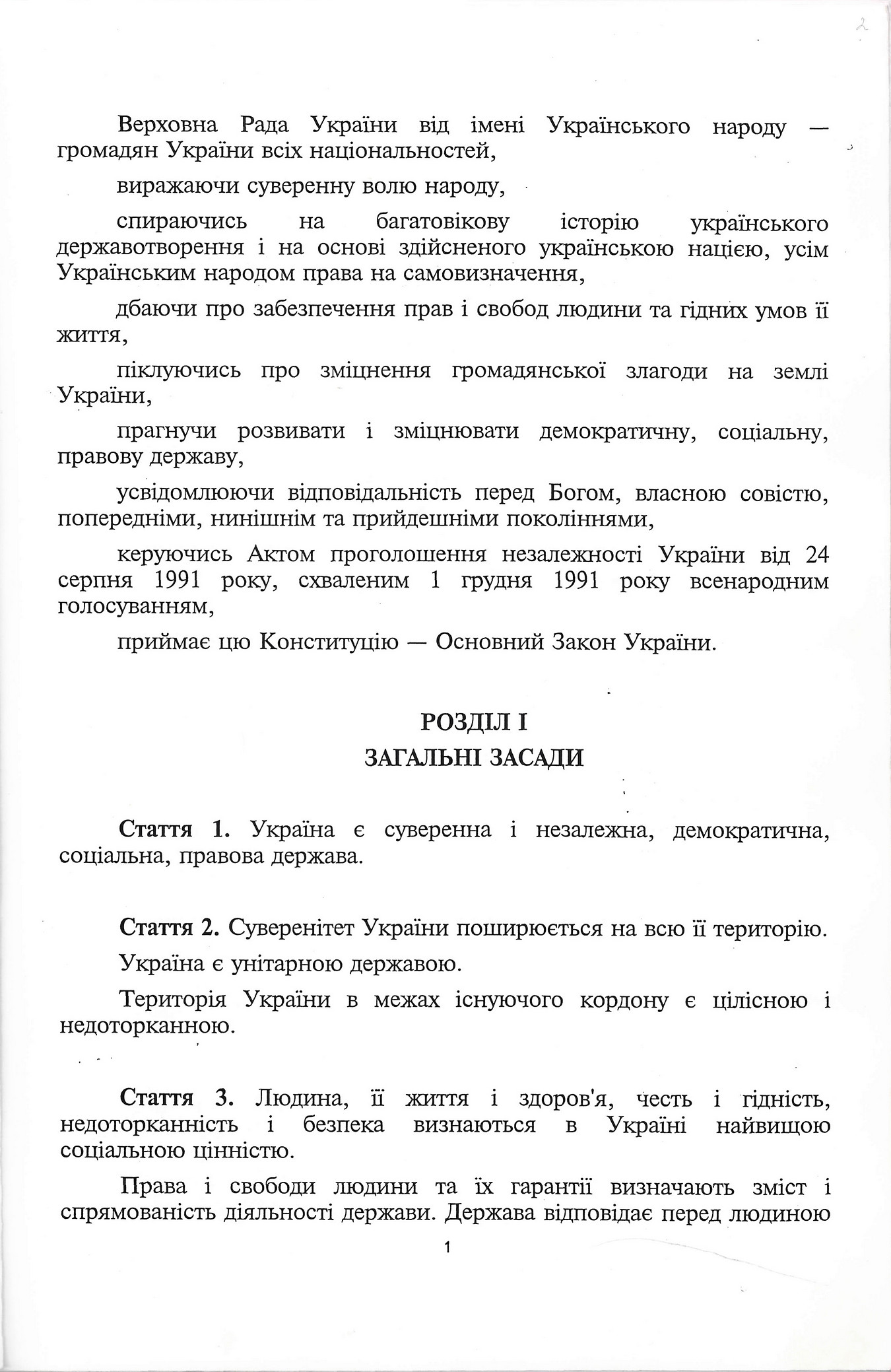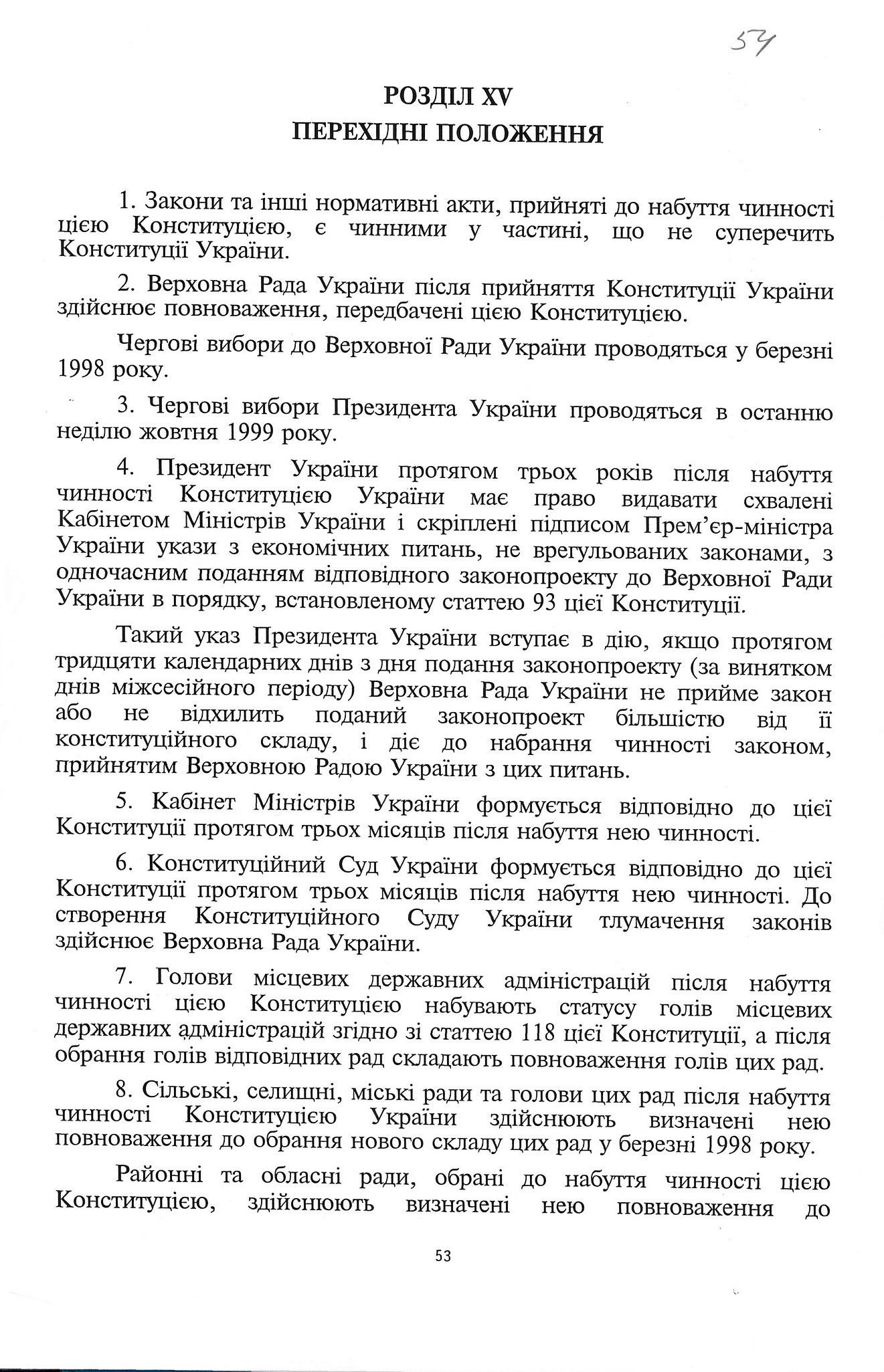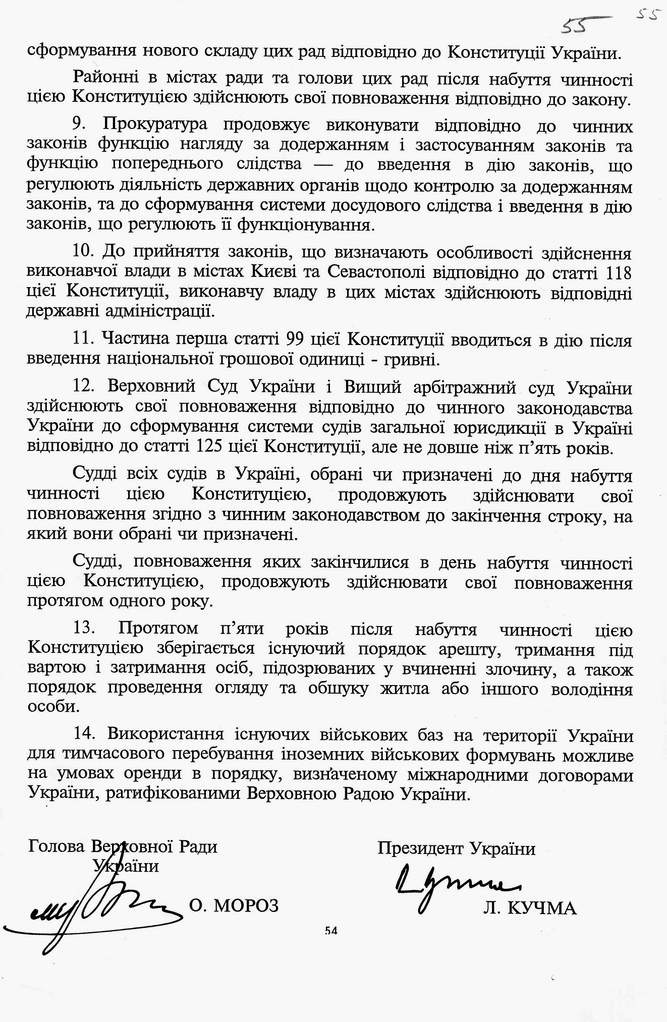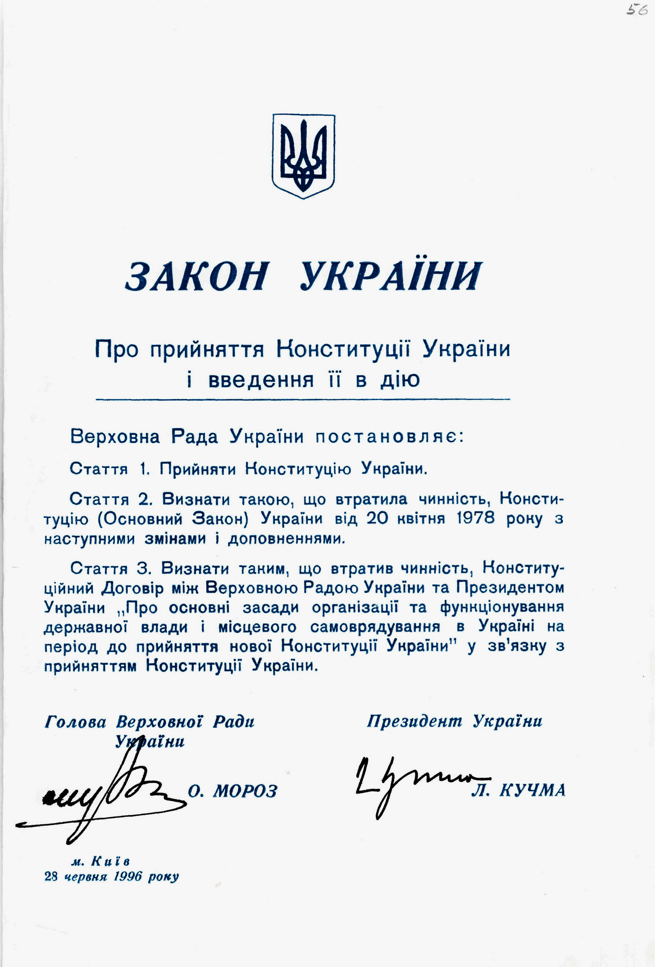 Закон України «Про прийняття Конституції України і введення її в дію». Київ, 28 червня 1996 р.