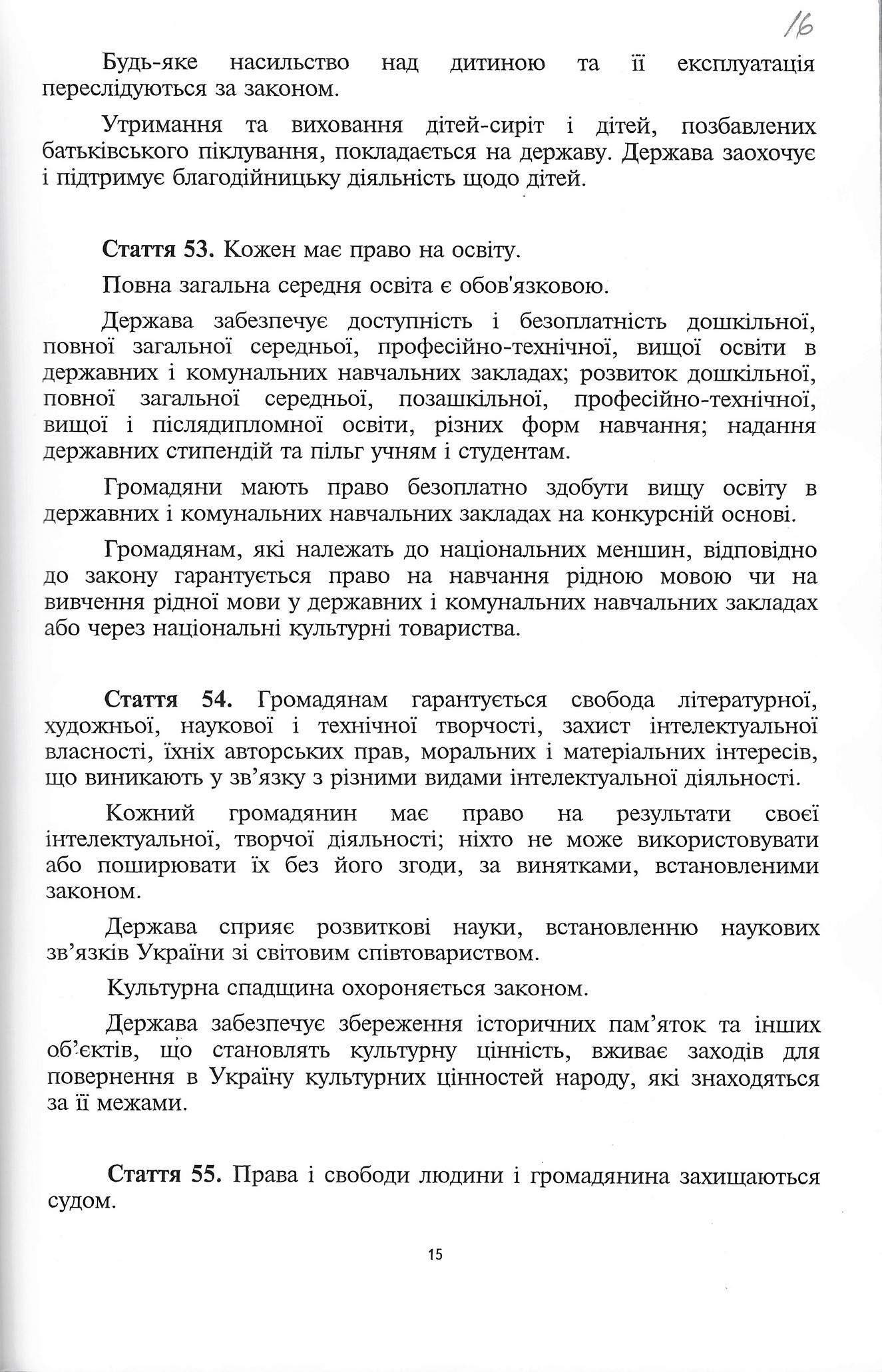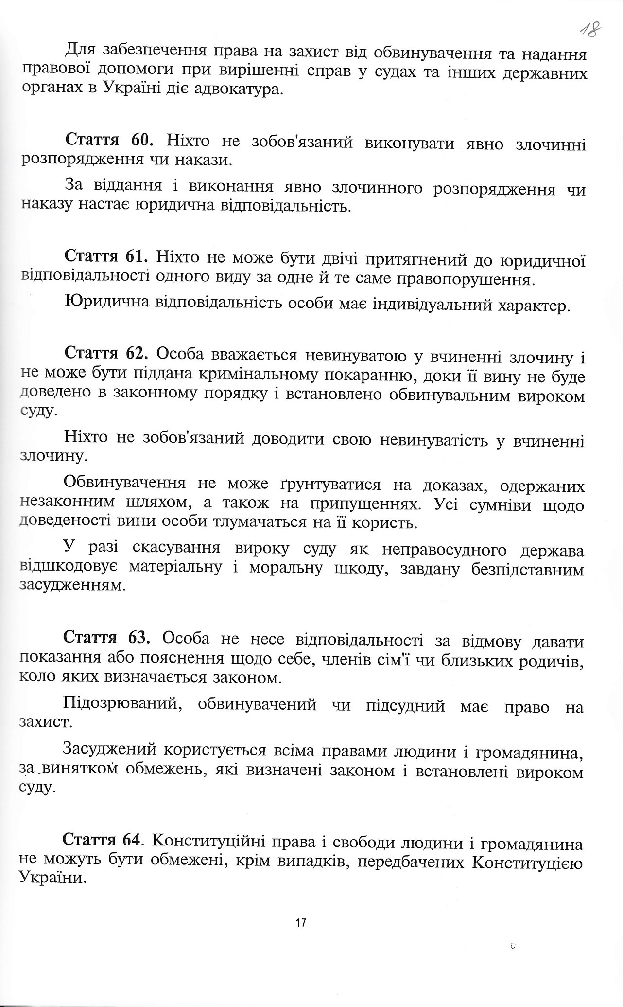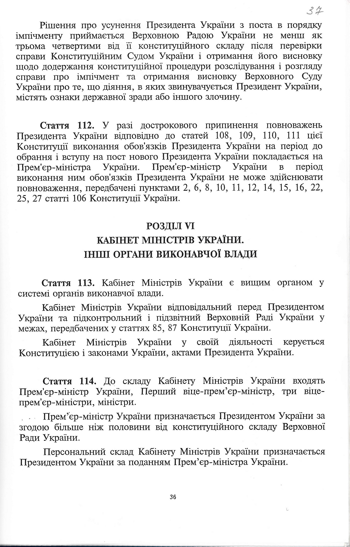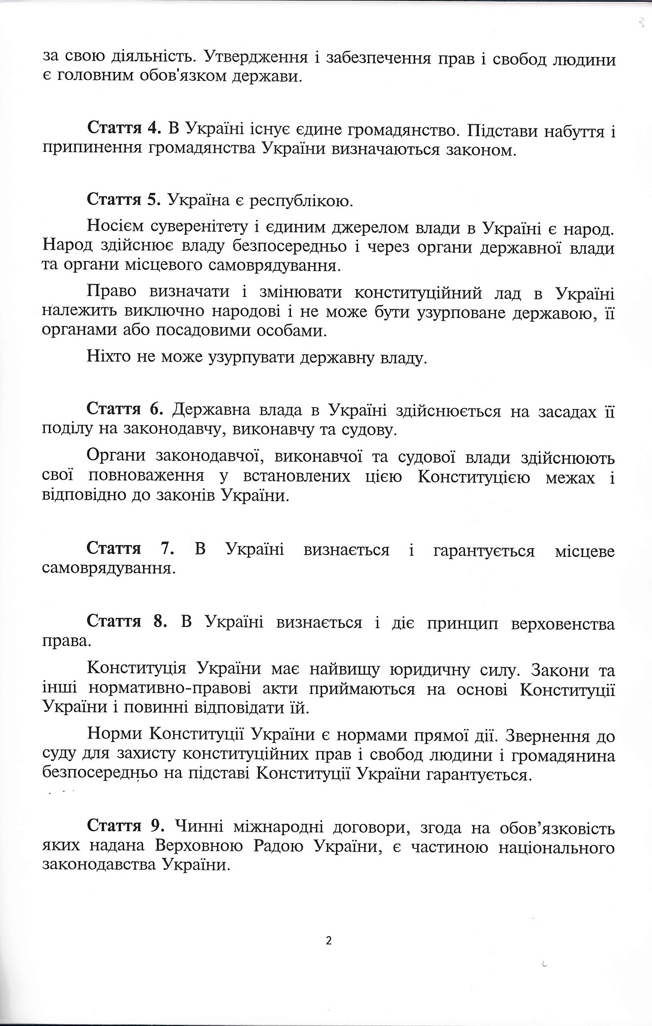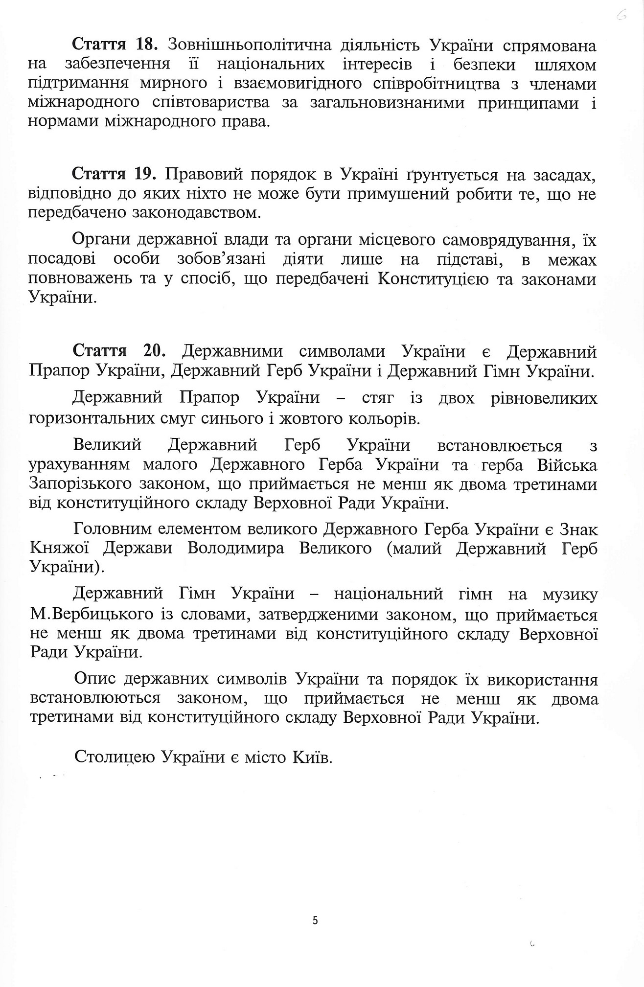 Закон України «Про прийняття Конституції України і введення її в дію». Київ, 28 червня 1996 р.