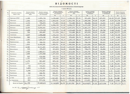 Відомості про результати Всеукраїнського референдуму 1 грудня 1991 р., Київ.