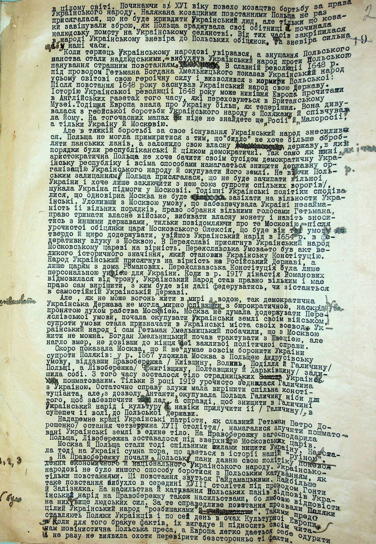 додатково, історичну доповідь про Київщину, в якій доводиться, що Росія не має на неї ніяких прав. Мова латинська.