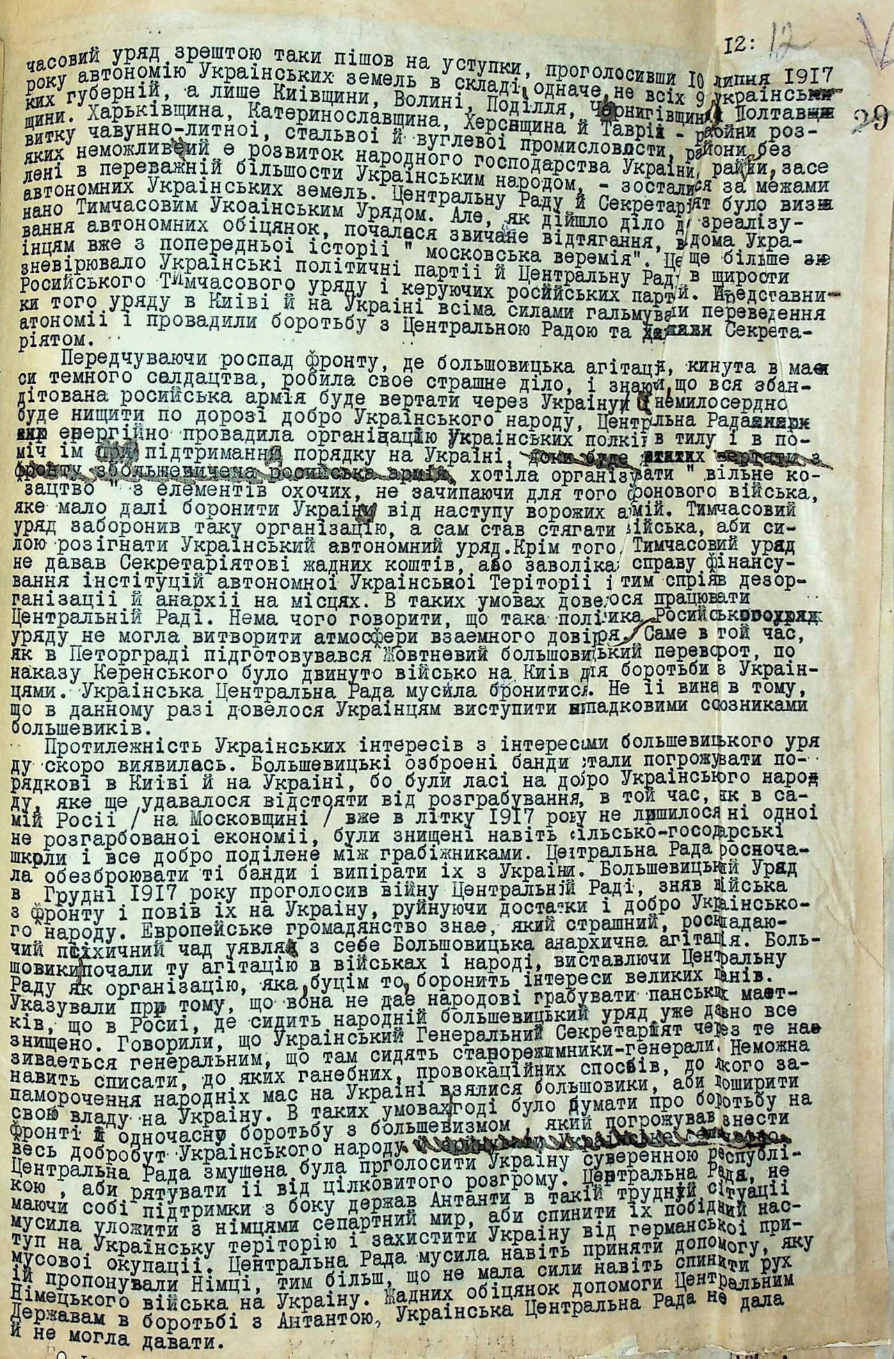 ЦДАВО України, ф. 380, оп. 1, спр. 3, арк. 1-17. Оригінал. Машинопис. Мова українська.