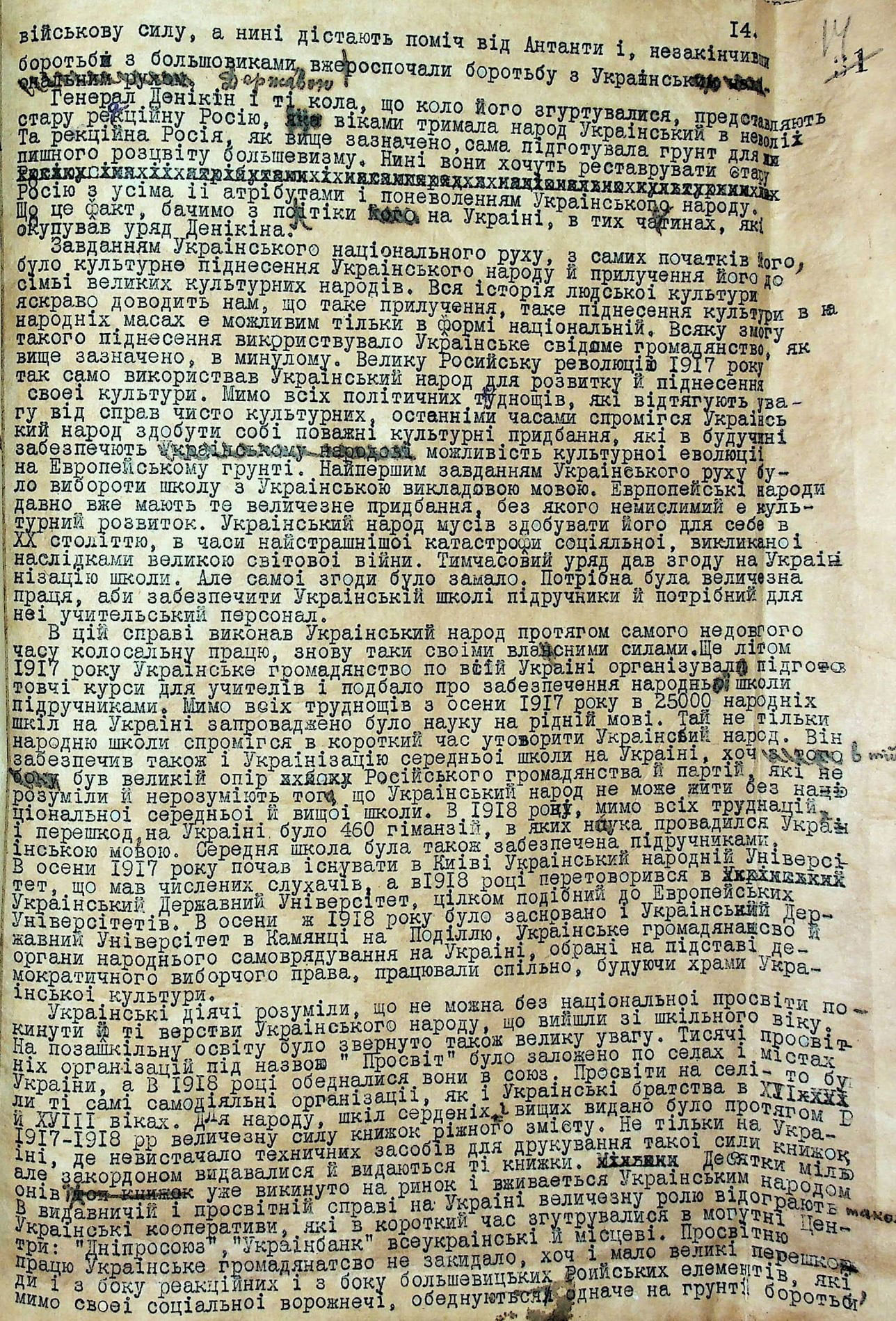 ЦДАВО України. ф. 1, оп. 16, спр. 4490, арк. 107. Оригінал. Машинопис. Мова українська.