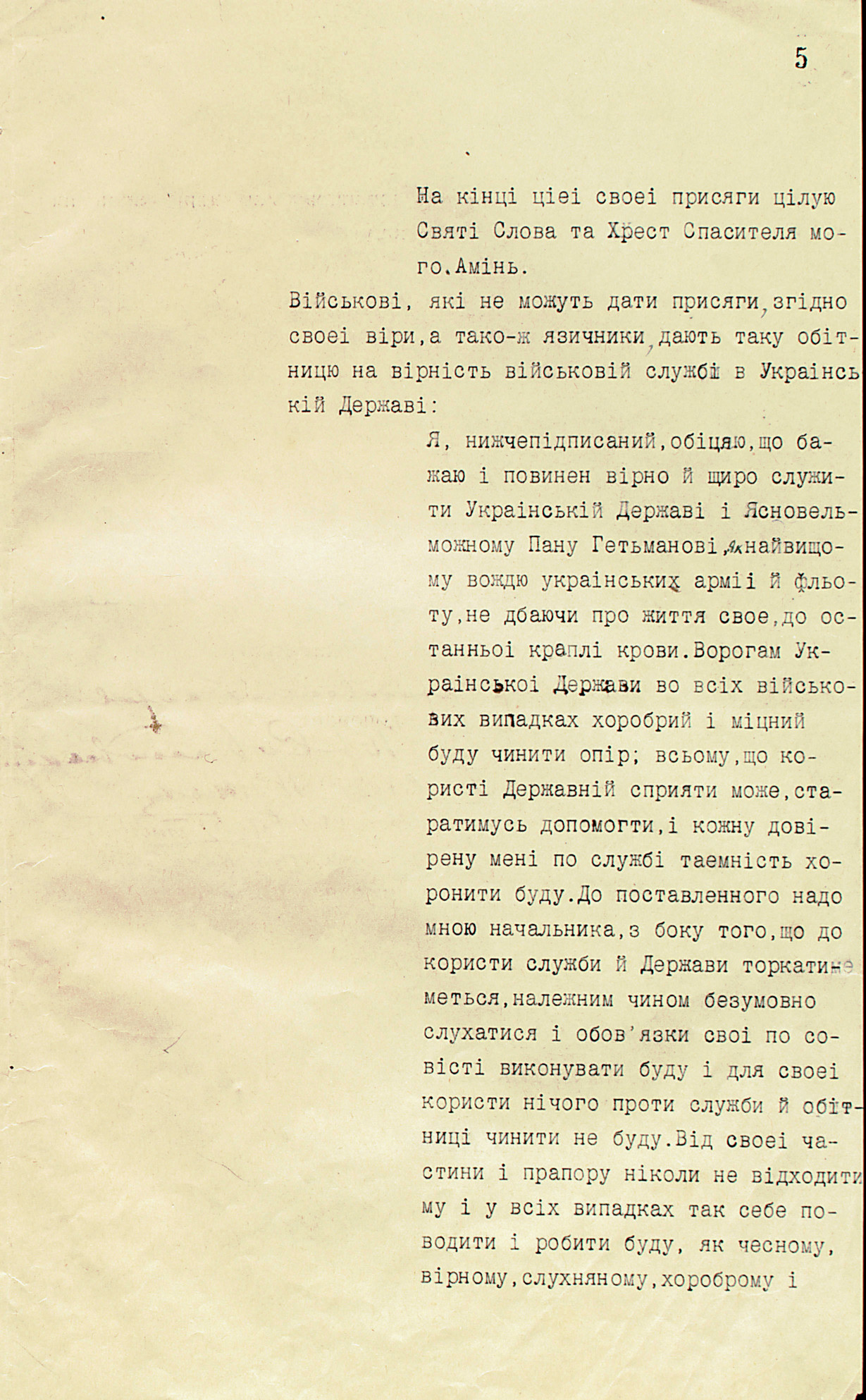 ЦДАВО України, ф. 1429, оп. 1, спр. 5, арк. 5. Оригінал. Машинопис. Мова українська.
