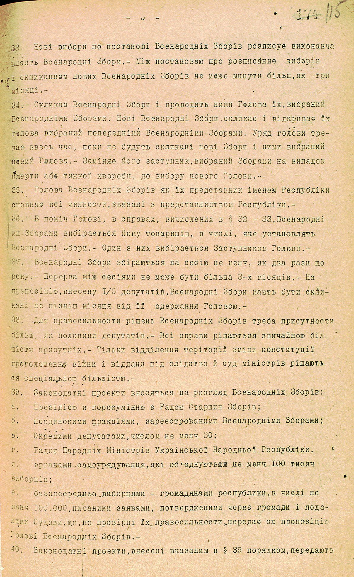 ЦДАВО України, ф. 1115, оп. 1, спр. 1, арк. 113-117 зв. Чернетка. Машинопис. Мова українська.