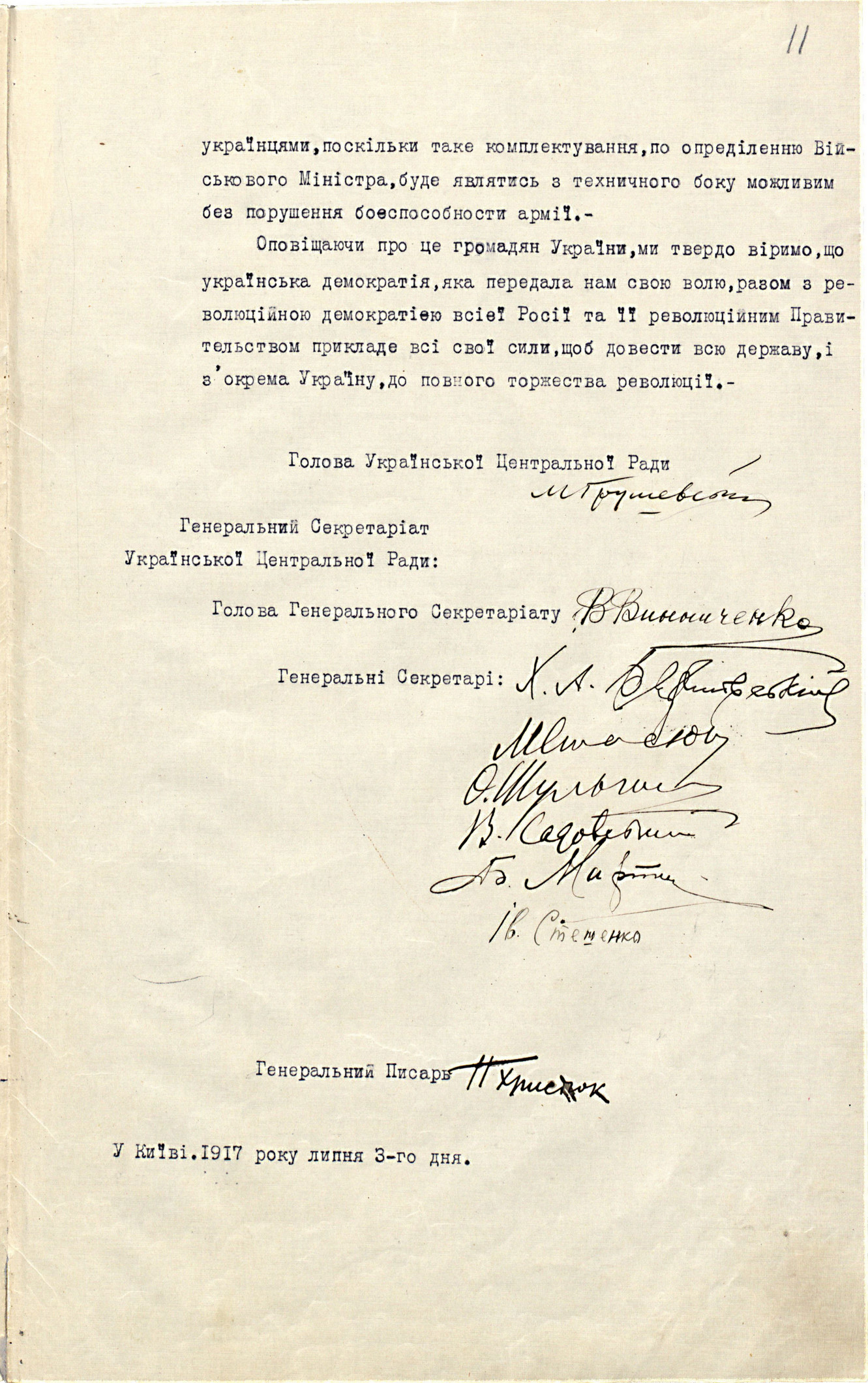 ЦДАВО України, ф. 1, оп. 16, спр. 4740, арк. 11. Оригінал. Машинопис. Мова українська.