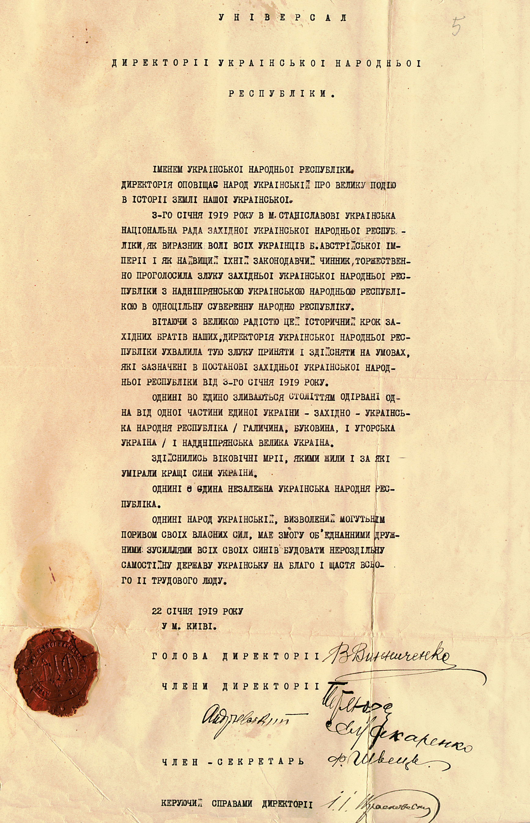 про злуку із Західно-Українською Народною Республікою. Київ, 22 січня 1919 р.
