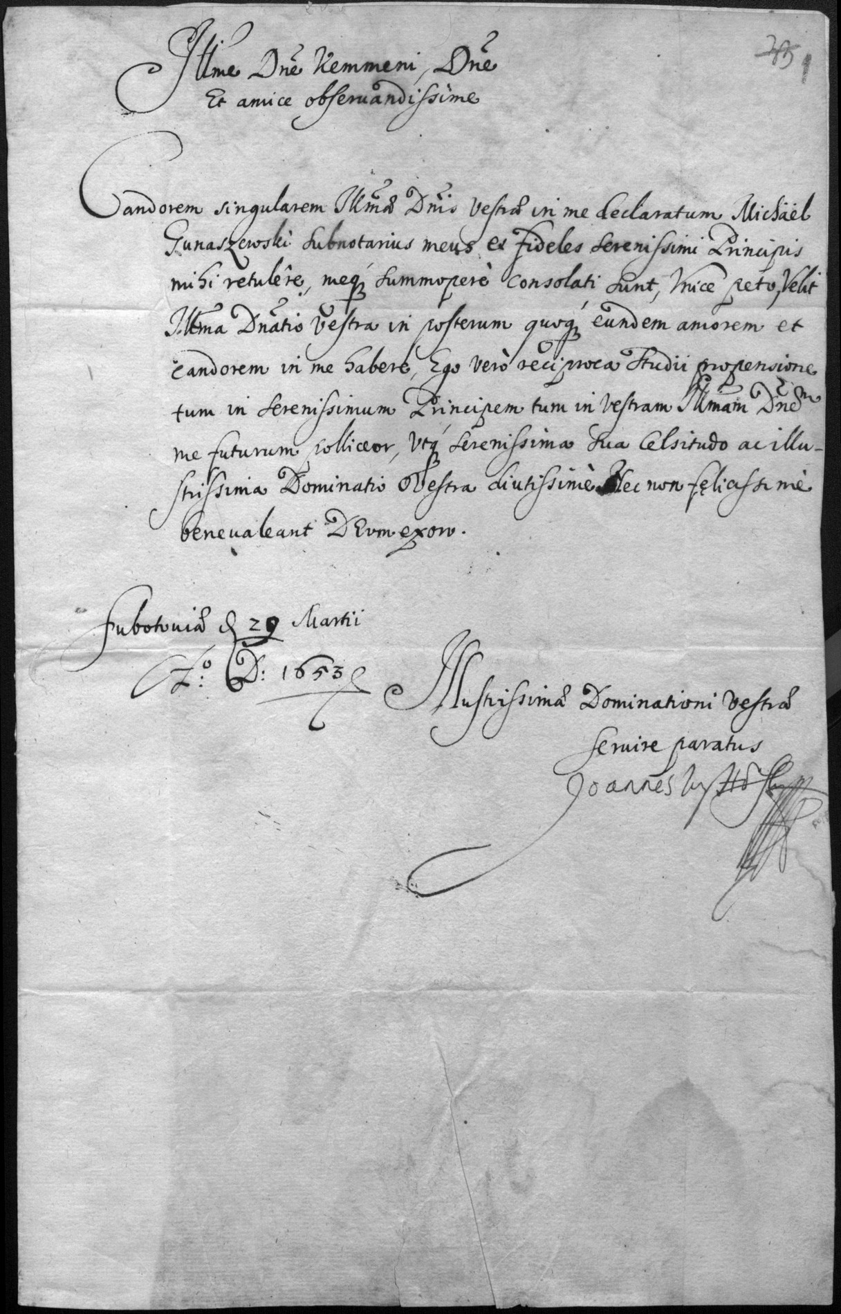 у зв’язку з його переговорами із козацьким послом Михайлом Гунашевським. Суботів, 29 березня 1653 р.