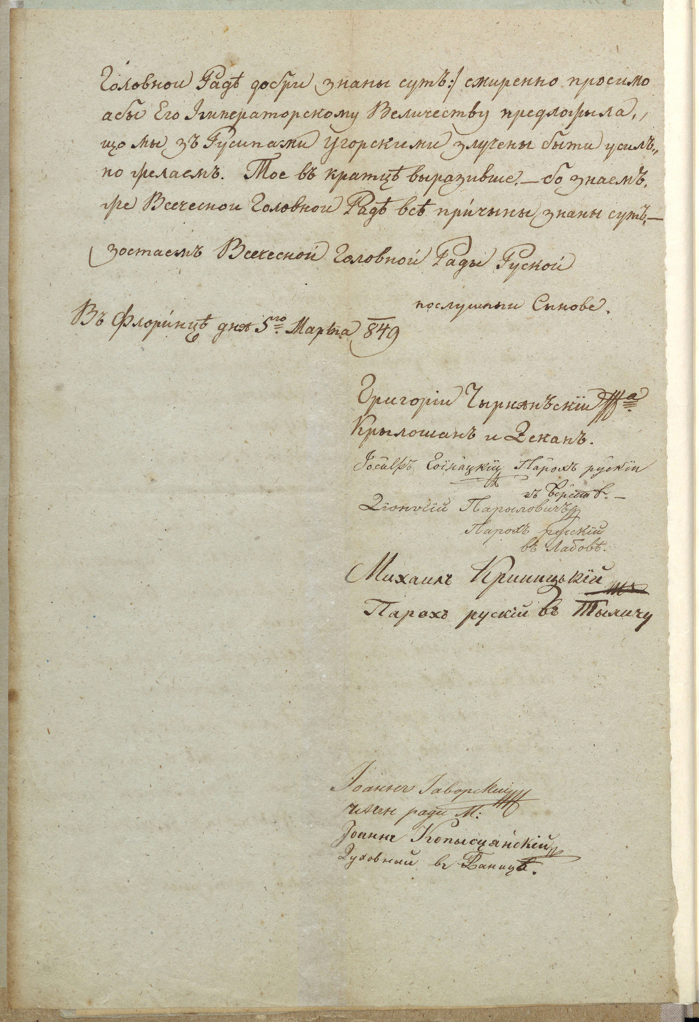 ЦДІАЛ України, ф. 180, оп. 1, спр. 21, арк. 9-9зв. Оригінал рукописний. Мова українська.